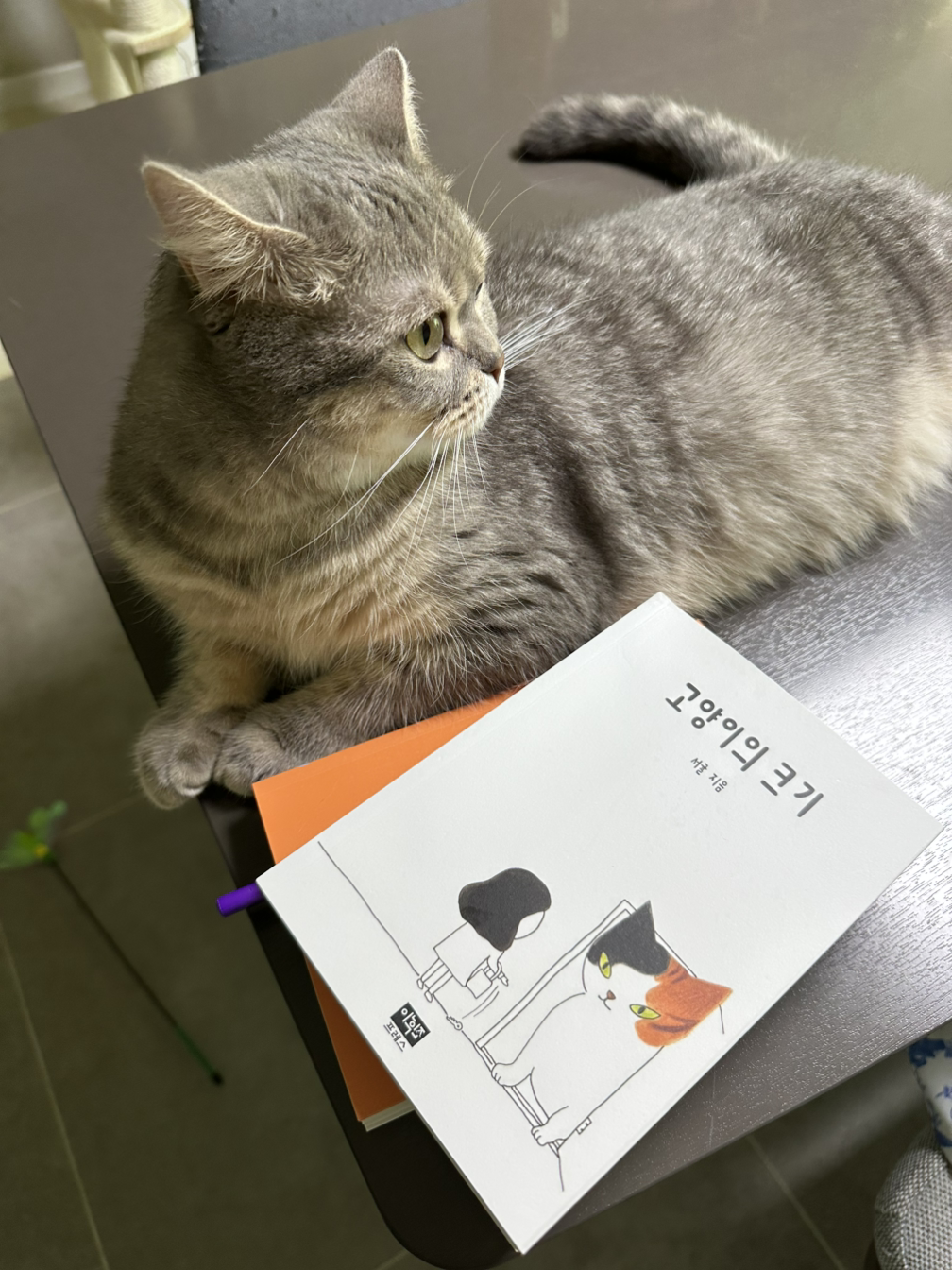 전주 책쾌에서 데려온 책 가운데에는 이후북스에서 나온 <고양이의 크기>가 있다. 서귤 작가님 특유의 귀여우면서도 날카로운(곡선으로 그려졌는데도 느껴지는 뾰족함) 그림이 담겼다. 어느 날 고양이가 거대 고양이로 변하면서 시작하는 이야기는, 어디로 어떻게 튈지 모르게 전개되다가 영롱하게 마무리된다. 이런 아름다운 작품 창작의 근원도 분명 고양이일 터. 고양이는 작가를, 쓰는 작가로 살게 하면서 작품의 영감이 되기도 하는, 작가에게는 필수적인 존재라 할 수 있다.