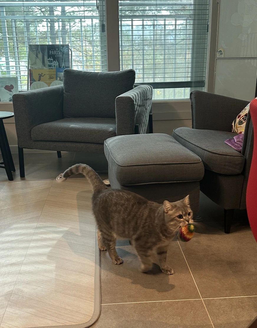 이른 아침 거실로 나가면 기지개를 켜면서 '아아' 소리를 내며 아는 체를 한다. 요가 자세로 개 자세(다운독)를 했다가 다가와 얼굴을 들이대며 만져달라는 이 아이, 쓰다듬지 않을 수가 없다. 볼을 만져주고 머리를 쓰다듬고 턱밑을 긁어주는 그 시간 덕분에 하루를 기분 좋게 시작한다.