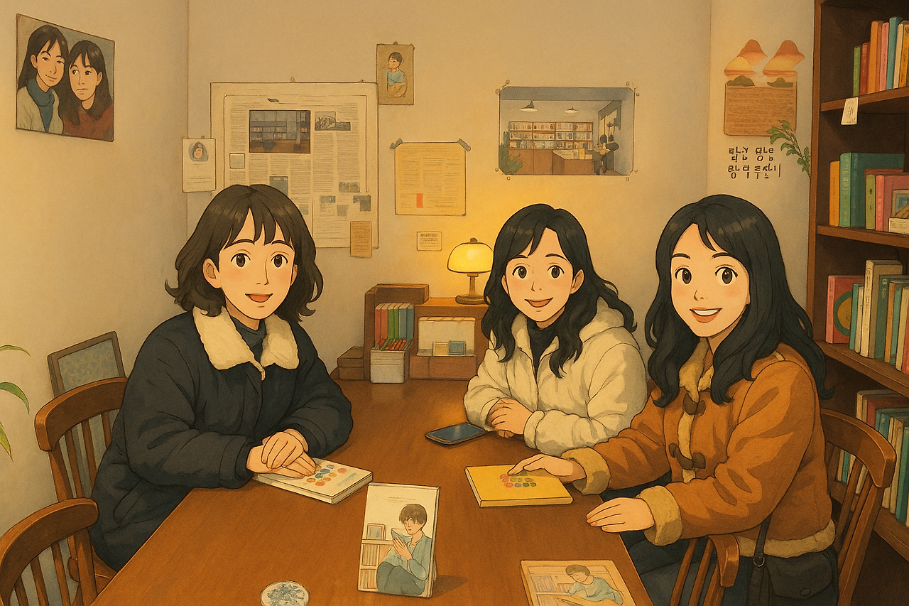 작업책방 씀에는 종종 '작가의 책상' 전이 열리고, 아이돌의 생일책방이 되기도 했다. 미화리, 혜은 작가님은 자신들의 공간을 내어주면서 다른 작가들에게 영감을 얻기도 하고, 아이돌에 대한 애정을 지닌 이들의 방문에 사랑을 체험하기도 했을 테다. 우리 주수희도 그런 동료라면 좋겠다. 서로의 성장을 지켜봐 주고 때로는 밖에서 오는 자극으로 우릴 채우는. 우리 안에 닫혀있기보다는 좋은 사람들과 경계를 넘나들며 함께 배우는 관계로. 정체되지 않되 정체성을 잃지 않는 모임으로 지속하고 싶다. 주변의 감사한 분들과 씀에 대한 열망으로 연대를 넓혀 나가도 좋겠다. 쓰는 모임이라는 건 돌봄의 관계라는 걸 몸소 알았으므로.