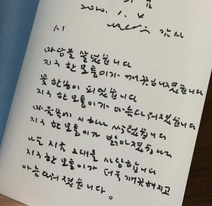 와, 나를 우러러보는 건가. 이거라도 베껴 쓰라고 했다. 글쓰기의 소재가 시가 될 수도 있으니까. 다른 아이들 글을 보고 있노라니, 금방