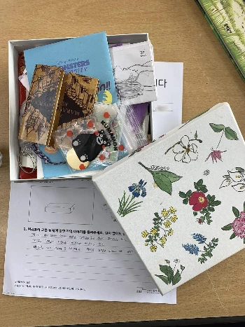 이른 기말고사가 끝난 중학교 3학년 아이들에게도 같은 수업을 진행해 보았다. 미술관도 구경하고, 디자이너의 기획의도 인터뷰, 전시실을 설치하는 타임랩스도 보았다. 다음 날 이어진 수업에서 추억의 물건은, 방탄소년단의 앨범과 응원봉에서부터 스티커를 모아두는 파우치, 친구로부터 받은 편지와 그림 등을 모아둔 상자, 가족 반지가 등장했다. 처음으로 다 닳도록 쓴 볼펜도 있었고, 네 잎 클로버가 들어있는, 처음에는 목걸이였다는 열쇠고리, 3년 간 쓰던 일기장을 가져온 친구도 있었다. 즉석에서 할 말을 준비해서 포장을 뜯지 않은 마스크 하나를 달랑 들고, 자신의 생명을 지켜주어 소중하다고 얘기한 남학생도 있었다. 마찬가지로 즉석에서 고안해 발표한 여학생은, 일 년 전 단짝 친구와 한 짝씩 바꾸어 신은 슬리퍼를 교탁 위에 올려도 되겠냐며 신고 있던 흰색, 노란색 슬리퍼로 친구와의 우정을 소개했다. 아! 12월 급식표를 들고 나온 아이도 있었는데, 지나간 날짜에는 죽 선이 그어져 있었다.