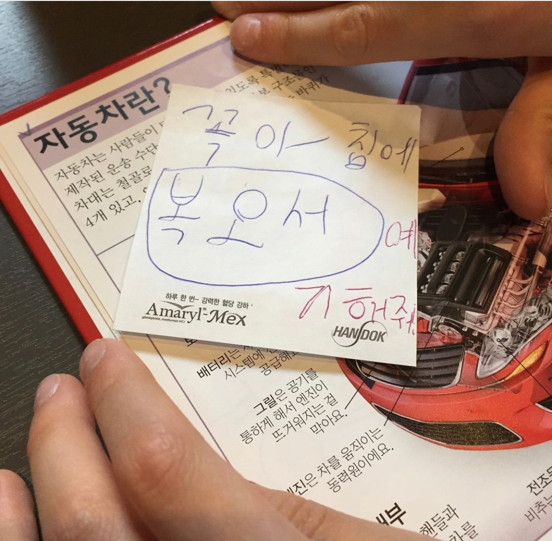 체험학습 계획서를 제출하고, 보고서를 꼭 선생님께 내라고 당부하던 저녁. 아이는 내일 아침에도 꼭 그 얘기를 한 번 더해달라며 쪽지에다가 이렇게 적었다.