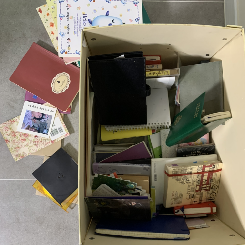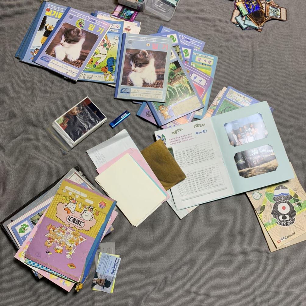 꼬맹이의 요청으로 내 일기 상자를 낑낑대며 꺼냈다. 초등학교 때의 그림일기며 일기장, 중학생 때 쓰던 감성적인 일기장도 있고, 대학생 때 들고 다니던 다이어리며 학교에서 준 수첩, 해마다 쓴 다이어리, 출산 후 주로 꿈을 기록하던 (그래서 당최 알아볼 수 없는 글씨의) 모닝페이지가 차곡차곡, 아니 마구잡이로 담겨 있었다. 초등학생 때의 기록을 꺼냈다. 둘째가 주도적으로 학년별로 정리하더니, 글씨에 대한 평, 그림에 대한 감상, 일기 내용에 대한 확인까지 했다. 어린 시절의 일기에는 주로 가족과 한 일이 나와, 아이는