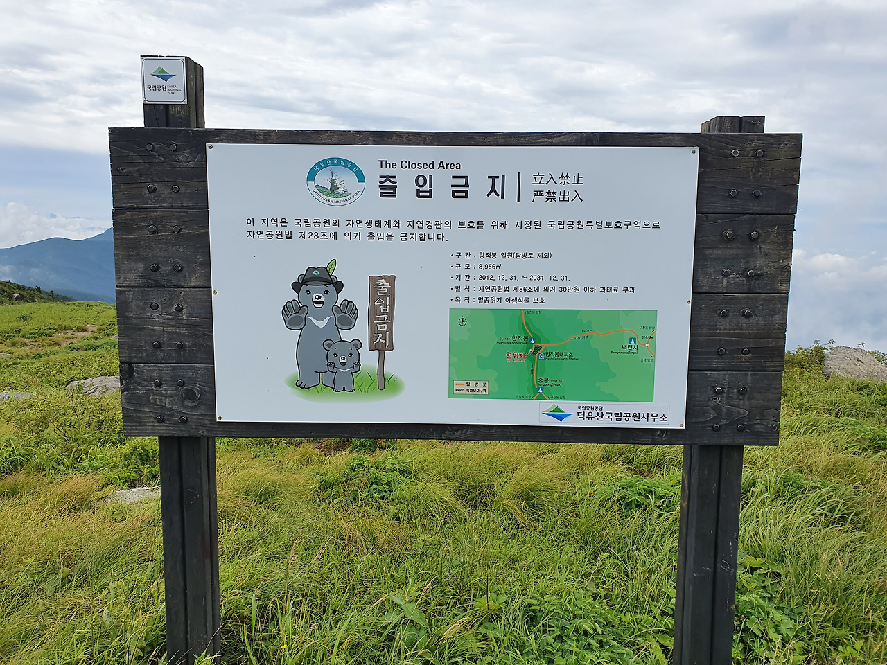 이런 내용의 안내판이 곳곳에 붙어 있었는데도 사람들은 아랑곳하지 않고 복원 중인 자연을 망가뜨리고 있었다. 하산길에 마주친 국립공원 직원에게 정상부에 단속 인원이 없다고, 지금 완전 무법천지라고 말해줬더니 곧 올라가 보겠다는 무성의한 답만 들었다.