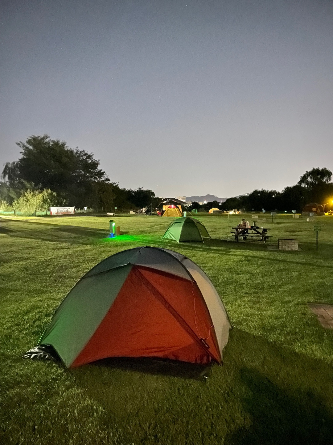 노을공원은 달랐다. 주말인데도 한산했고, 고기 굽는 연기도 진동하지 않았다. 노을공원도 난지캠핑장과 비슷했을 수도 있다. 그러나 코로나가 모든 것을 바꾸었다. 거리두기 4단계 이후 캠프 사이트 절반만 예약을 받고 사이트당 이용객도 제한했다. 샤워실을 폐쇄했고, 10시 이후에는 음주도 금지했다. 이러니 호젓할 수밖에 . 오후 6시 즈음 체크인을 하니, 우리가 예약한 사이트의 전후좌우에는 아무도 없었다. 느긋하게 텐트를 설치하고 선선한 가을바람을 쐬며 저녁밥을 해 먹고 모닥불을 피워 불멍을 즐겼다. 덥지도 춥지도 않은 9월 중순의 서울이 이렇게 캠핑하기 완벽한 때인지 몰랐다.