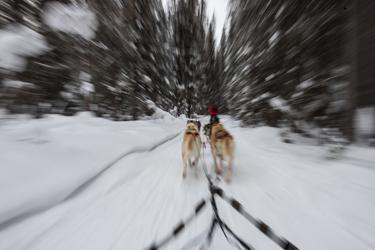 마지막날 낮에는 개썰매투어를 했다. 대낮에도 영하 10도를 밑도는 날씨였던 터라 희망자만 참여했다. 2인 1조로 6마리 알래스칸 허스키가 끄는 썰매를 타는 프로그램이었다. 얌전하던 댕댕이들이 출발 기미가 보이자 산이 떠나도록 짖기 시작했다. 썰매 끌기 싫다고 시위를 벌이는 건 아니다. 허스키는 체질적으로 달리기를 좋아하고 수천년 동안 북극권 추위에 적응하며 살았기에 이런 추위쯤에 끄떡하지 않는다.