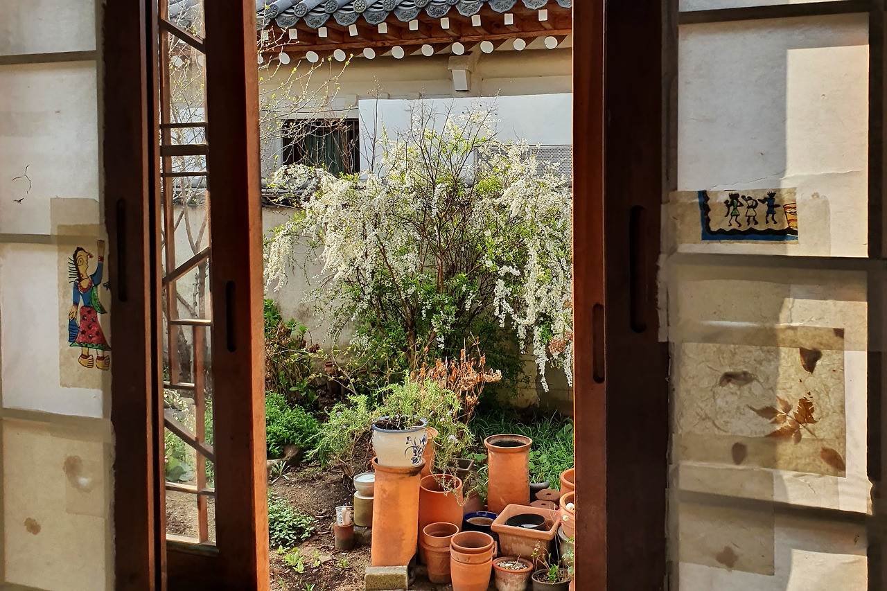 아침밥을 먹고나니 운전의 피로와 좁은 방에 대한 불만이 일시에 해소됐다. 이 집이 달리 보였다. 한옥 마당이 그리 넓진 않았는데 설유화, 히어리 등 자잘한 봄꽃이 어우러진 모습이 정겨웠다. 툇마루에 걸터앉아 햇볕을 쐬고 책을 읽으며 여유를 누렸다. 관광객이 골목 가득한 황리단길 한편에 이렇게 평화로운 세상이 있다니. 갑자기 서울에서도 한옥에 살아보고 싶다는 망상이 들었다.