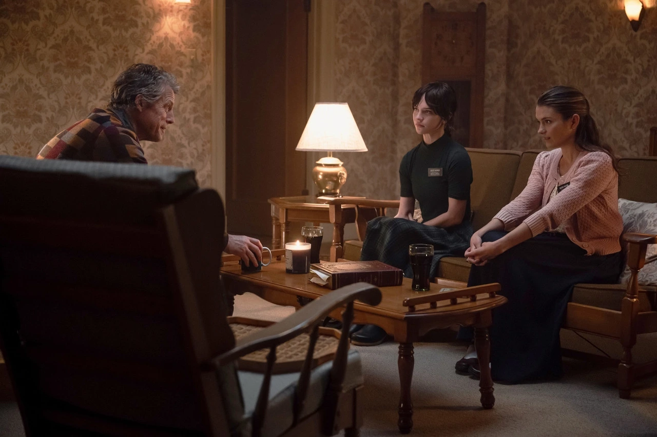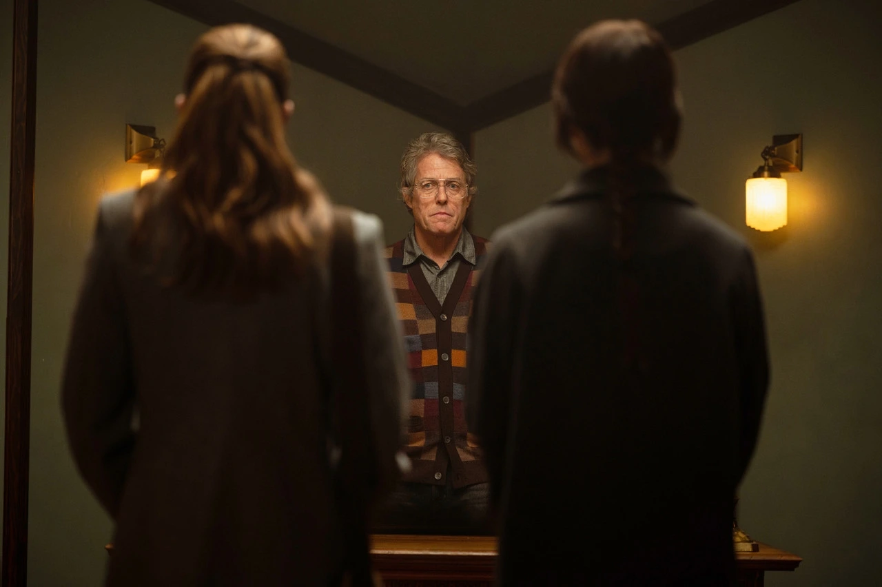 <헤레틱>은 외딴집에 몰몬교를 전도하는 두 소녀가 방문하면서 벌어지는 이야기를 그린다. 친절해 보이지만서도 한편으로는 수상해 보이는 집주인 ‘미스터 리드(휴 그랜트)’는 영화의 초반부부터 관객들을 긴장시킨다. 아내가 음식을 대접하려고 한다며 시간을 끄는 모습은 누가 보더라도 수상케 생각하기 쉽다. 수상한 미스터 리드의 모습을 두 소녀가 눈치채기까지는 그리 오랜 시간이 걸리지 않는다. 금세 이야기는 팽팽한 긴장의 줄 위에 놓인다. 카메라는 완전히 두 소녀 ‘반스(소피 대처)’와 ‘팩스턴(클로이 이스트)’를 비추고, 관객은 그들이 느끼는 긴장감에 온전히 빠져들어야만 한다.
