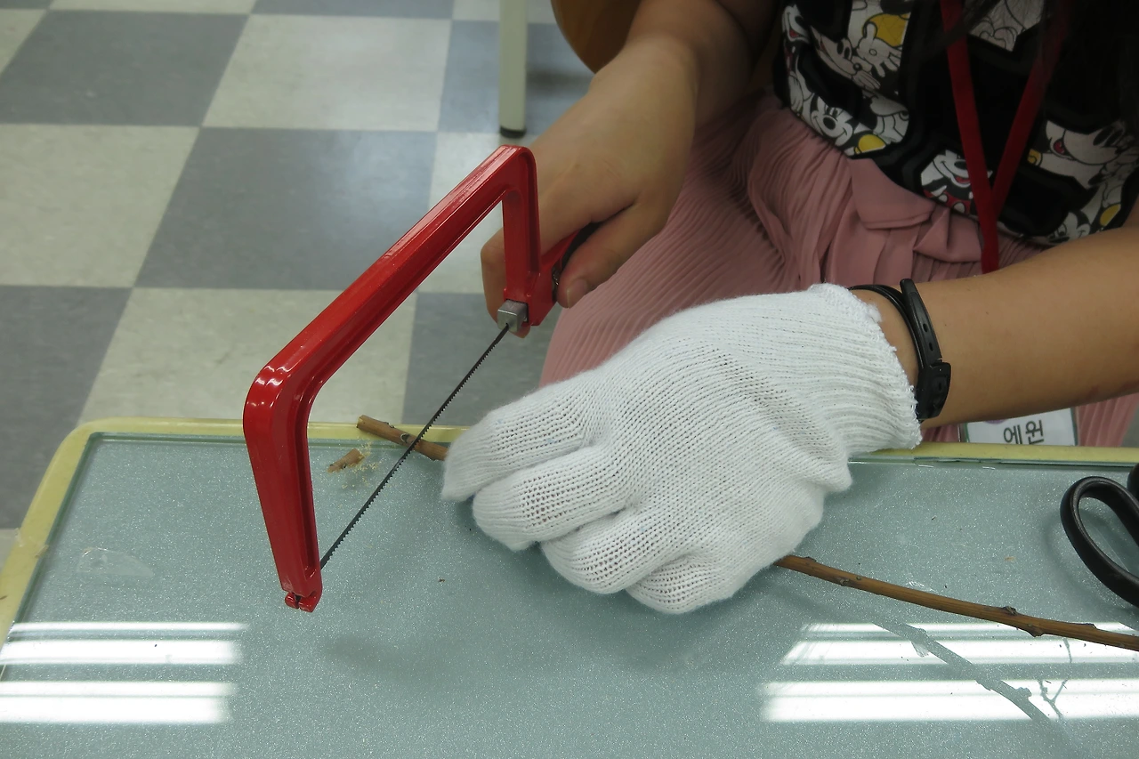 직소기(나무 모양이나 크기를 변형할 때 사용하기 위해 요술 톱을 준비했으나 사이즈가 너무 큰 나무를 자르거나 단단한 나무를 자를 때는 직소기를 사용하는 것이 좋다. 단, 직소기는 위험하므로 학생들에게 맡겨두면 절대 안 되고, 교사가 직접 잘라주어야 한다.)