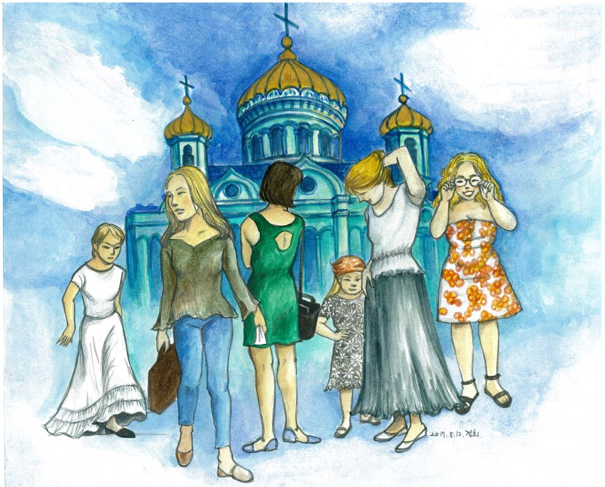 모스크바에서 러시아 여인들을 눈여겨본 것은 그네들의 남다른 패션 센스 때문이었다. 물론 내 개인적인 생각이긴 하지만 그녀들이 참 잘 차려입는다는 생각을 했던 것 같다. 많은 것 같았다. 그녀들은 캐주얼보다 정장의 느낌이 나거나 드레스 차림의 옷을 선호하는 이들이 많은 것처럼 느껴졌다. 외부자의 눈에는 마치 오드리 헵번이 주연한 영화 전쟁과 평화 속 여인들처럼 보였다고나 할까. 그녀들의 원피스의 그 우아함이라니.... 심지어 어린 소녀들조차 잘 갖춰 입고 있다는 느낌이었다. 그녀들을 통해 나의 패션의 여성성을 돌아보면서 옷이란 저리 입어야 하는 거구나 하는 생각을 했다. 돌아가면 나도 저렇게 우아하게 입어보겠다는 지킬 수 없는 결심까지 했으니까.