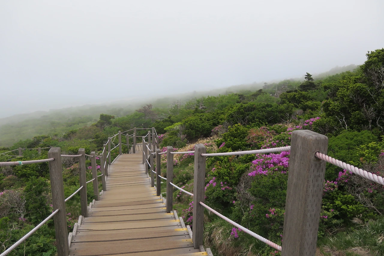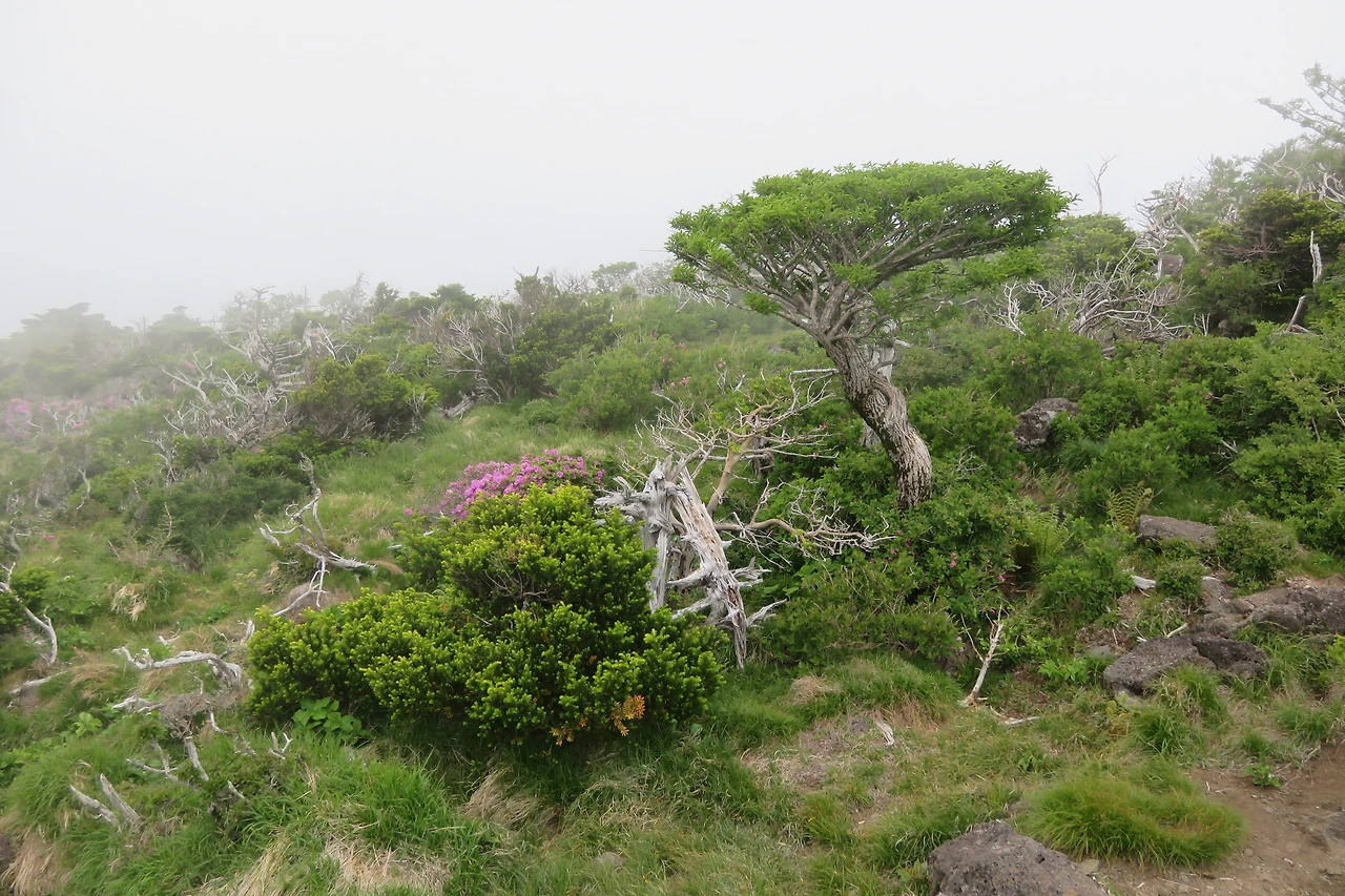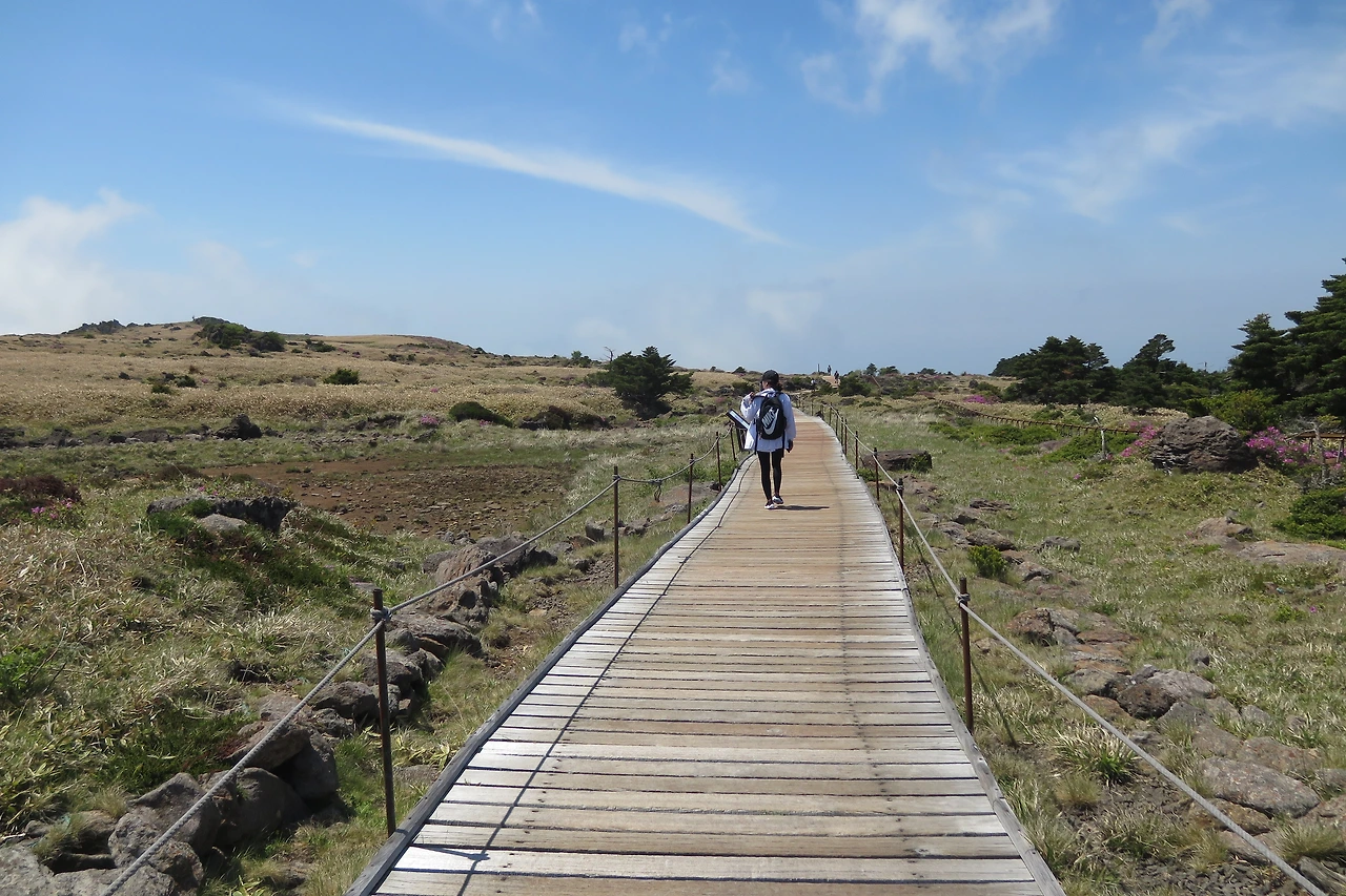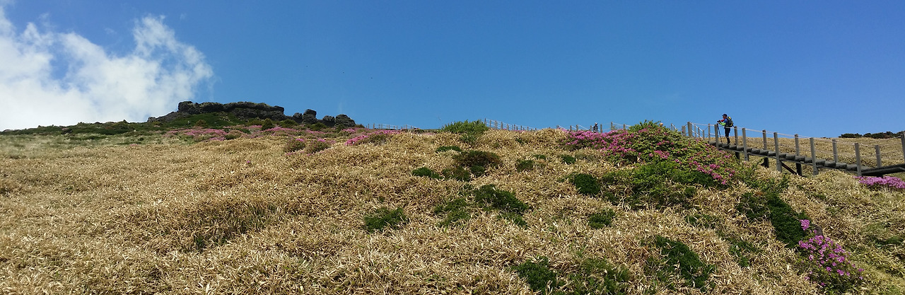 영실코스의 철쭉꽃은 영실 기암을 지나면서 비로소 나타난다. 그런데, 이곳을 방문하면서 새롭게 발견한 것은 내가 그토록 보고 싶었던 철쭉꽃이 아닌 선작지왓의 끝간 데를 짐작하기 어려운 광활하고 너른 조릿대 군락이었다. 백록담의 둥근 가슴을 멀리 조망하며 걷던 먹먹하게 너른 그 벌판이 아직도 눈 앞에 아른거린다. 철쭉꽃은 충분히 아름다웠지만 기대했던 만큼은 아니었다. 아마도 멀리서 조망할 수밖에 없는 지형 조건 때문이었는지도 모르겠다. 내년 여름 다시 이곳을 오게 된다면 그것은 아마도 철쭉 때문만은 아니 것이다.