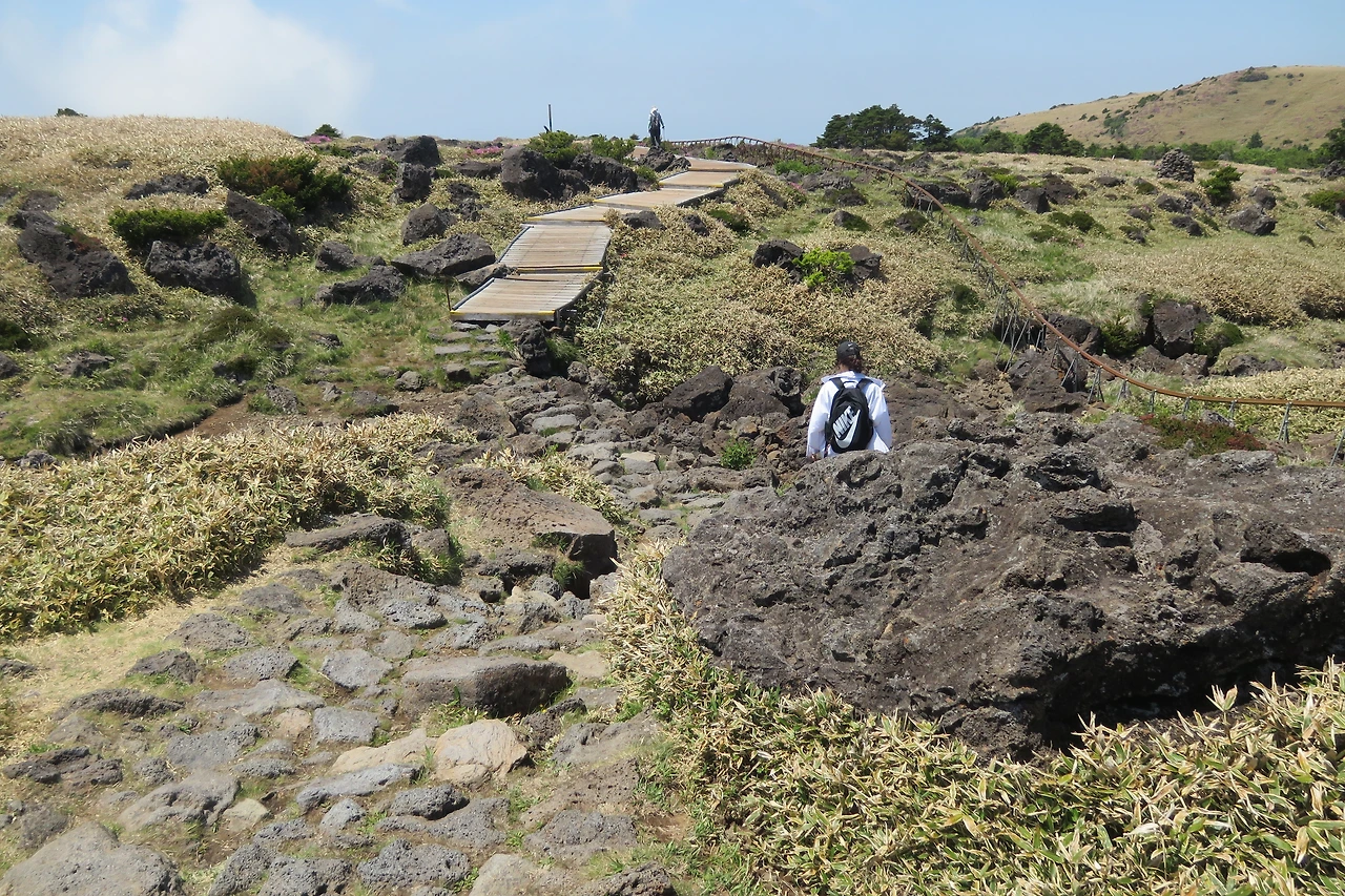 선작지왓의 전망대를 지나 윗세오름으로 가는 길을 걷다 보면 오른편으로 노루샘을 만날 수 있다. 여기서 한라산 물 한 모금으로 목을 축이고 윗세오름으로 향한다. 병풍바위 근처에서 구름에 잠시 갇혔던 것과 달리 선작지왓부터는 비교적 화창한 날씨가 계속되었다.