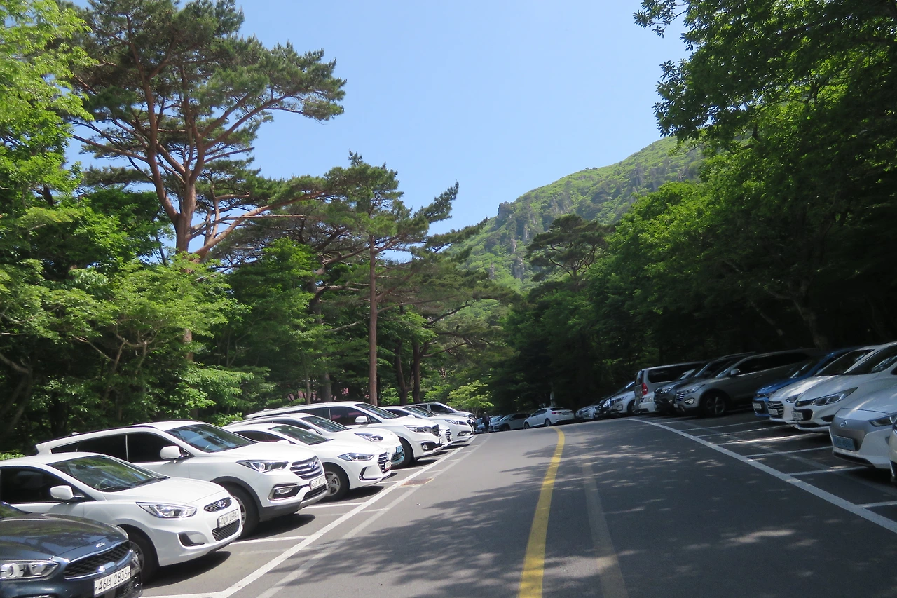 영실 주차장 입구에 도착하니 여러 대의 승용차가 주차장 진입을 위해 대기하고 있는 것이 보였다. 영실 주차장이 좁아서 주차할 수 있는 차가 몇 대 안되기 때문에 먼저 온 차가 나갈 때까지 기다려야 한다고 한다. 택시 기사님 이야기로는 먼저 주차한 차가 언제 나올지 모르기 때문에 한 시간 대기는 기본이라고 한다.