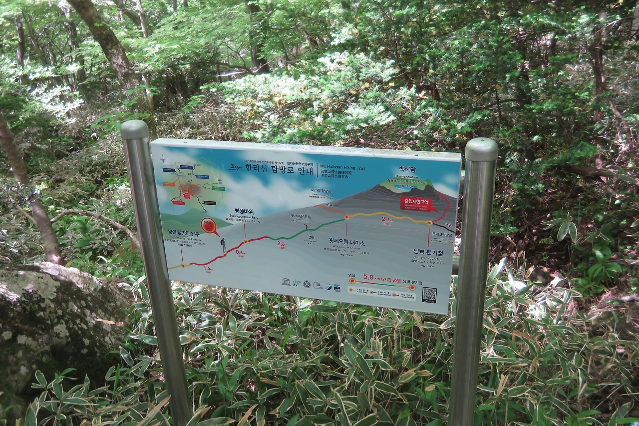 영실 탐방코스 안내도. 입구에는 유네스코 등재를 알리는 팻말이 있으며, 영실코스는 해발 1280m에서부터 시작한다.