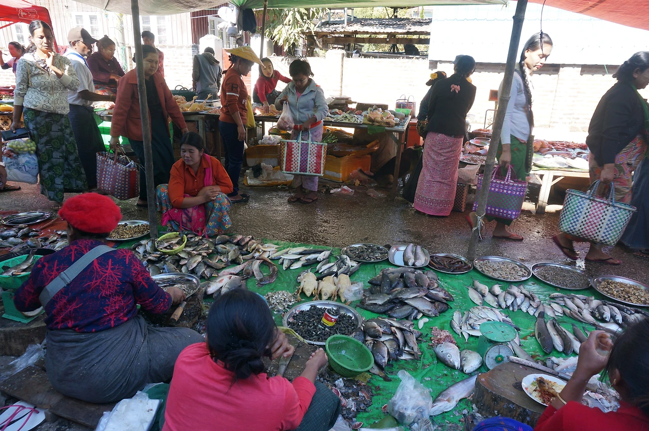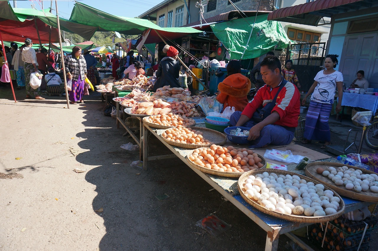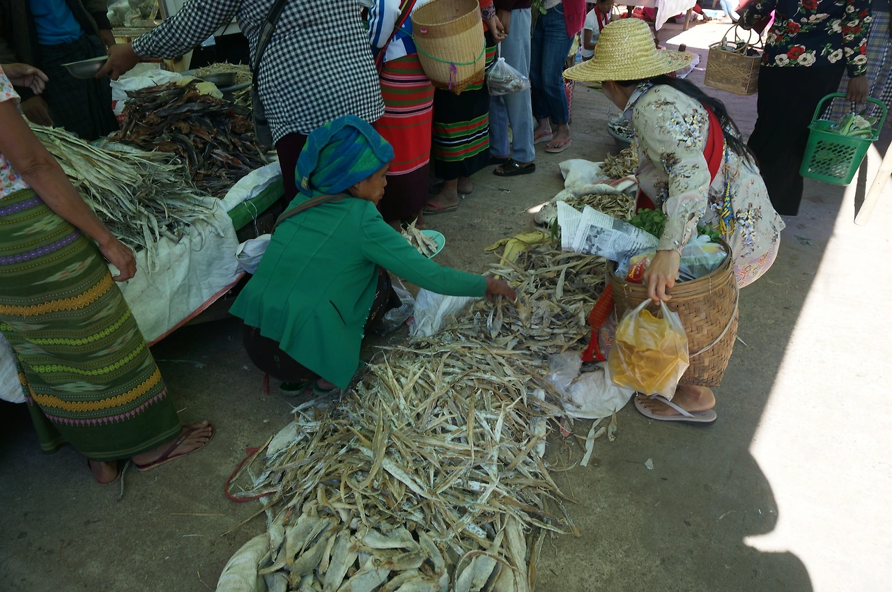 껄로 오일장에서는 주로 일상생활에 필요한 물건들을 많이 팔았다. 반면 나중에 방문한 인레의 인데인 오일장에서는 관광객이 많기 때문인지 식품류는 물론이거니와 팔찌, 목걸이, 목조, 직조 테이블보, 마그넷, 소 뿔로 만든 수저와 같은 소수민족들이 만드는 특이한 공예품을 구경할 수 있어서 더 흥미로웠다. (껄로 오일장을 구경한 것은 1월 8일. 아마도 3일과 8일이 껄로 장날일 것이다.)