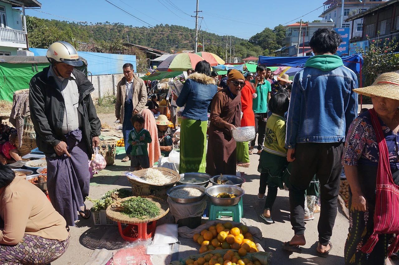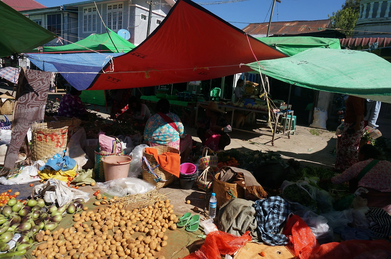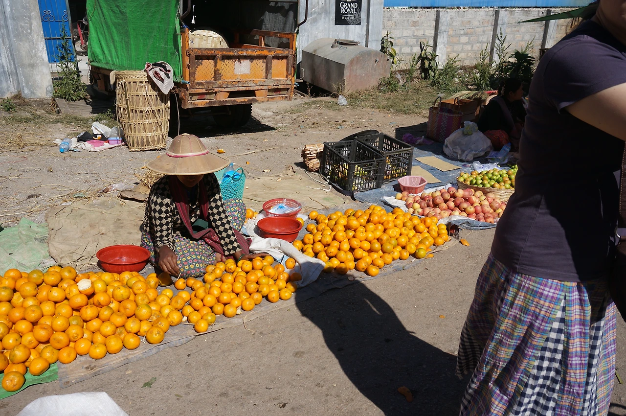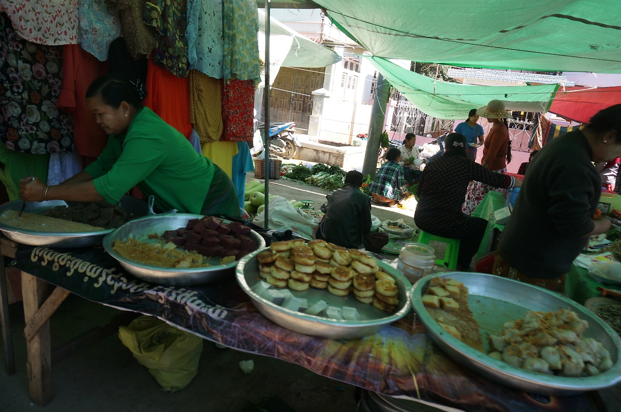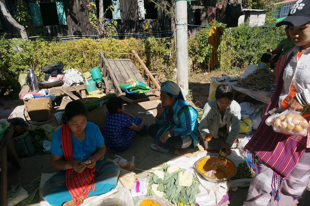 두부, 찰밥과 같은 먹거리, 아보카도, 귤 같은 과일과 생선, 달걀, 조잡해 보이는 플라스틱 머리핀이나 액세서리까지. 원래 있던 상설장에 오일장까지 더하니 껄로의 장은 제법 커졌다. 그런데, 늘 빠지지 않는 품목은 꽃 가게. 상설시장이건 오일장이건 빠지지 않고 꽃 가게가 있다는 사실은 나에게는 약간 놀라운 일이었다. 마당만 나가면 온통 자연인데 이 시골에서 꽃 가게를 열 정도로 꽃이 팔린다는 것 아닌가. 물론 이 또한 미얀마에 대한 선입견일 수 있을 것이다. 하지만, 시골살이를 했던 나의 어린 시절을 생각하면 미얀마의 꽃가게는 놀라운 일이 아닐 수 없다.(꽃은 들판에서 꺾어오는 것이지 사는 것이 아니었다.) 아마도 사원에 꽃을 바치는 전통 때문에 꽃가게가 있는 것 아닐까 생각할 뿐이다.