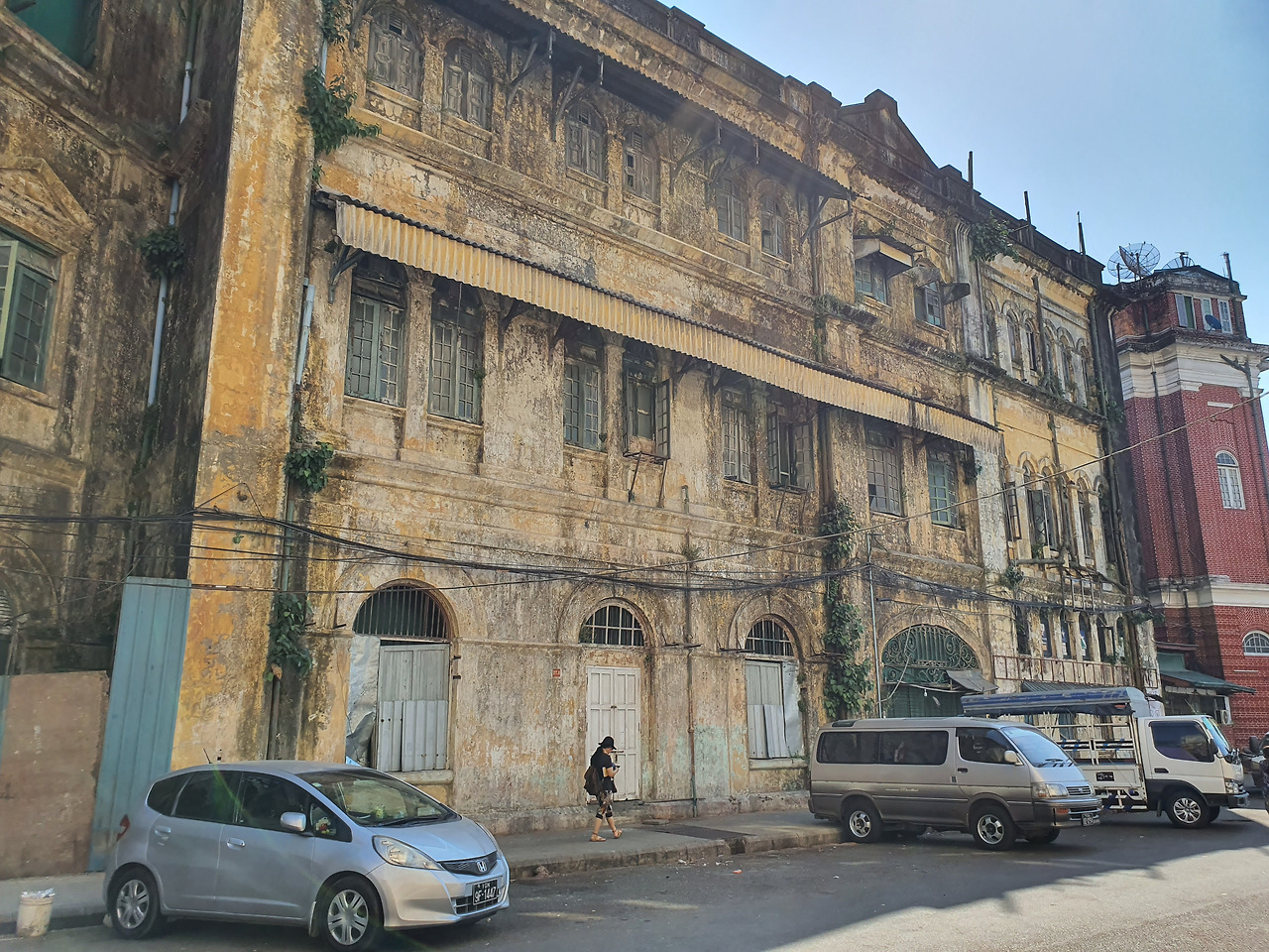 그런데, 양곤강 쪽으로 한 블록을 더 내려가면 거의 방치되다시피 한 유럽식 건축물들을 발견할 수 있다. 외벽의 칠은 벗겨지고, 페인트 칠 대신 곰팡이가 벽 가득 피어 있다. 나무로 된 덧창은 뜯겨나가고, 깨어진 창문에는 비닐이 쳐있다. 사람이 살고 있지 않는 듯 건물은 너무나 황폐해져 있었다. 미얀마는 경제를 살리기 위해 관광업에 전력을 쏟고 외국인 관광세를 따로 받는 등 안간힘을 쓰고 있으나 아마도 이런 건축물 관리까지는 손을 쓰지 못하고 있는 것 같았다.