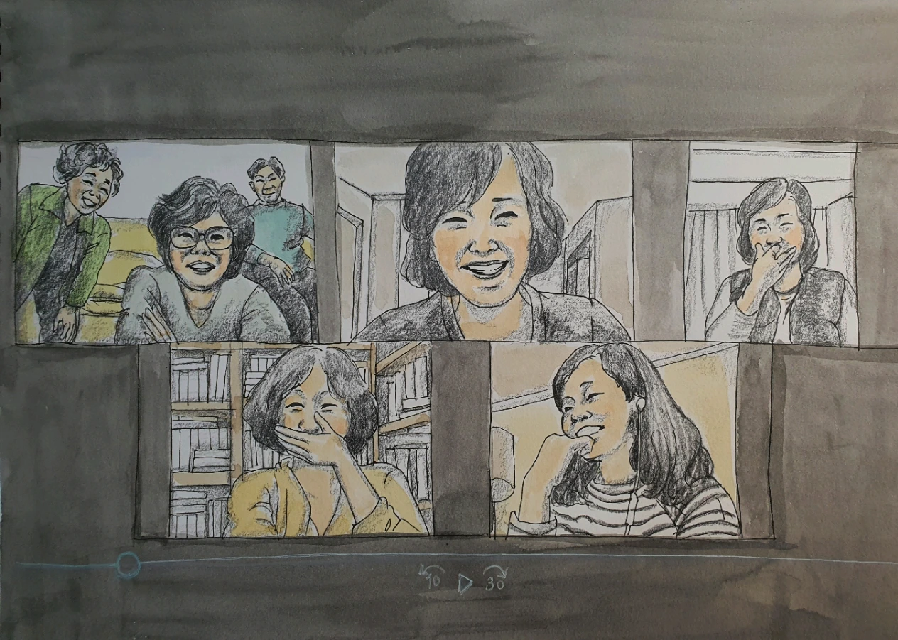퇴근하고 나면 파김치가 되어 매일 쓰러져 자던 날들이 열흘 남짓 지나 주말이 되었다. 그동안 마음의 여유가 없어 자매들과 수다도 떨지 못하고 눈팅만 하던 나도 오랜만에 톡방에 참여해서 함께 수다를 떨기 시작했다. 셋째가 다시 화상채팅 이야기를 했다. '그러지 말고 우리 진짜 화상채팅이라도 할까?' 이미 줌으로 수업을 하고 있던 터라 내가 바로 방을 만들어 톡방에 링크를 공지했다. 진짜 할 것이라고 생각을 하지 못했던 언니가 서둘러 프로그램을 깔고 회의에 입장했다.(줌은 회원가입을 하지 않아도 회의 참석이 가능하다.) 곧이어 한 살이라도 젊은 막내가 서둘지도 않고 익숙한 듯 회의실로 들어왔다. 화상채팅을 제안했던 셋째도 곧 회의에 참여했다. 그런데, 넷째는 일이 있는지 톡을 확인하지 않은 상태. '얘 일 있나 봐. 톡도 안 보고 있어' '야, 우리끼리 수다 떨자.'