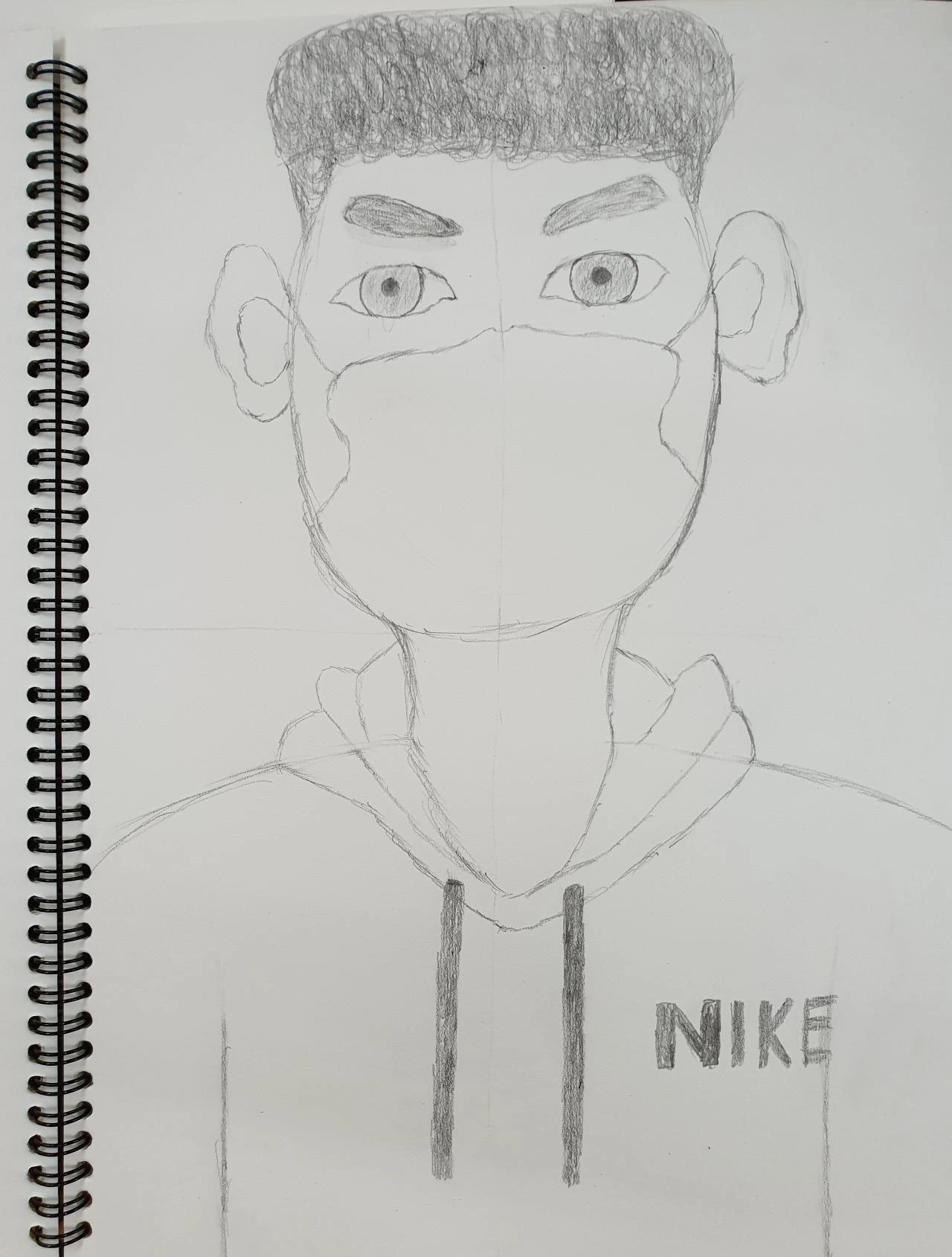 중학교 학생들과 친구 모습 그리기 수업을 하면 자주 보게 되는 그림 유형들이 있다. 먼저, 도화지의 크기에 비해 인물을 지나치게 작게 그린다는 유형이다. 아무리 '좀 더 크게 그려봐. 도화지에 꽉 차게 그려.' 라고 이야기해본들 크게 달라지지 않는다. 가끔 흉상(가슴까지만 그린 인물화)을 그릴 때면 도화지 한 가운데에 인물을 조그맣게 그리고 마치 증명사진이라도 된 양 인물 가슴께에 선을 그려 그림의 범위를 표시하는 경우도 있다.