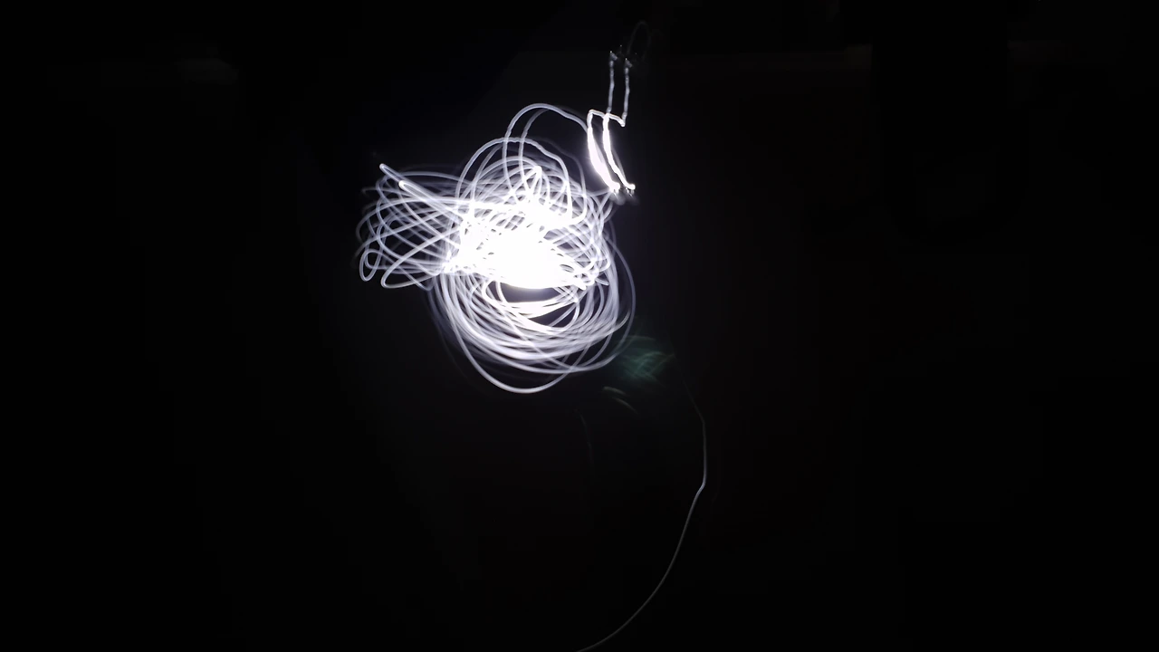 언젠가 개그맨 김국진이 나오는 광고가 있었다. 무슨 광고인지 생각도 안 나는데, 마지막은 '밤새지 마란 말야!' 라고 외치면 '벌써 샜단 말야!"로 답하는 광고였다. 아무튼 뭔가가 진짜 재미있어서 정신을 차려보니 밤이 벌써 샜다는 이야기. 내 모습이 그랬다. 촬영은 당연히 생각처럼 잘 되지 않았다. 중간에 랜턴을 묶은 실의 길이를 늘렸다 줄였다를 반복하고, 불빛이 부족한가 싶어서 건전지를 바꾸기도 하는 등 여러 가지 실험을 할 수밖에 없었는데 그럼에도 불구하고 엉킨 실타래처럼 엉성하게나마 찍힌 불빛이 나를 계속 이끌었다. 십 여 회 시도 끝에 어쩌다가 한 장 그럴싸하게 찍히면 '아싸!'를 외쳤다가 '되잖아!"를 외쳤다가 하면서 마치 재미있는 놀잇감이라도 발견한 어린아이처럼 다시, 다시를 외치면서 촬영을 이어갔다.
