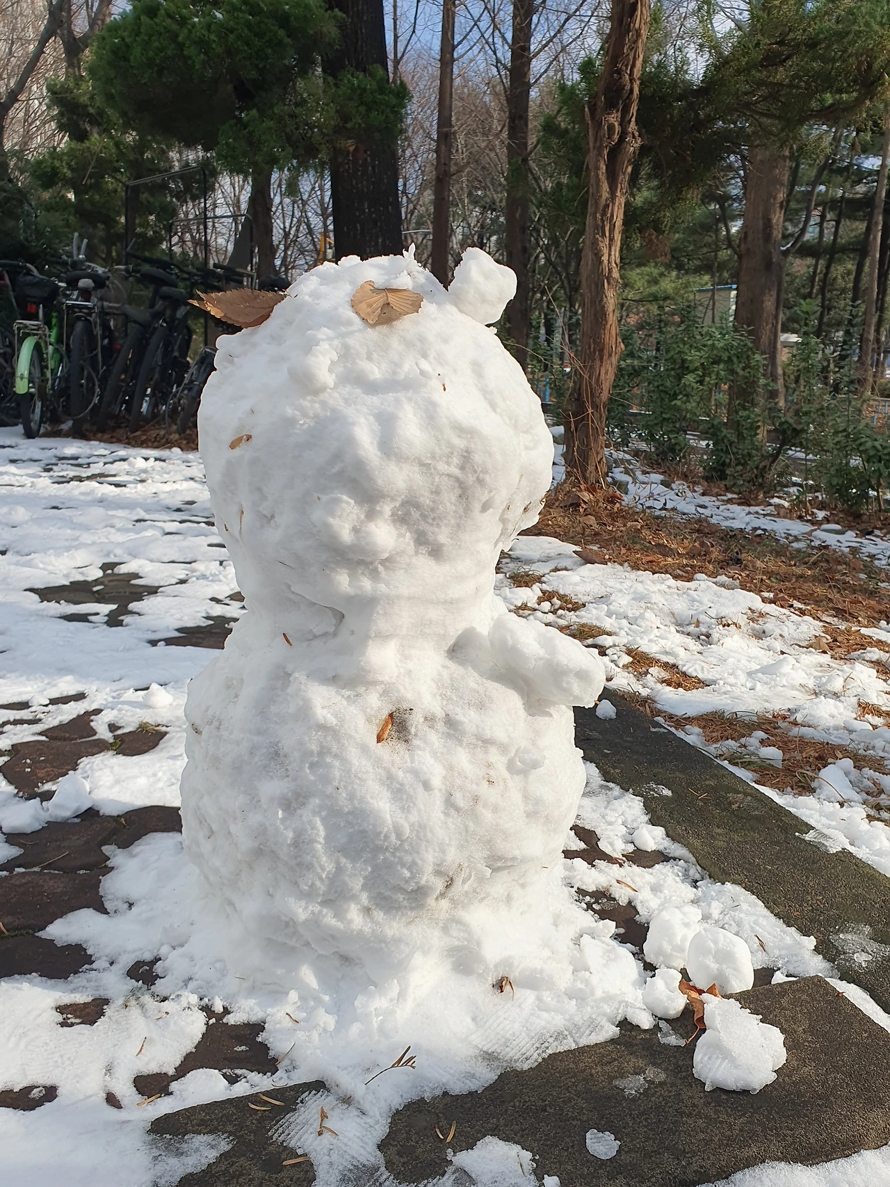 놀이터를 지나는데 눈사람들이 나를 맞았다. 오랜만에 온 함박눈이라 모두들 뛰쳐나와 만들었을까? 주차장에도 공원에도 놀이터에도 눈사람들이 보초를 서고 있었다. 낙엽과 나뭇가지, 심지어 스티커까지 동원한 개성 있는 눈사람을 보자니 절로 마음이 유쾌해졌다.