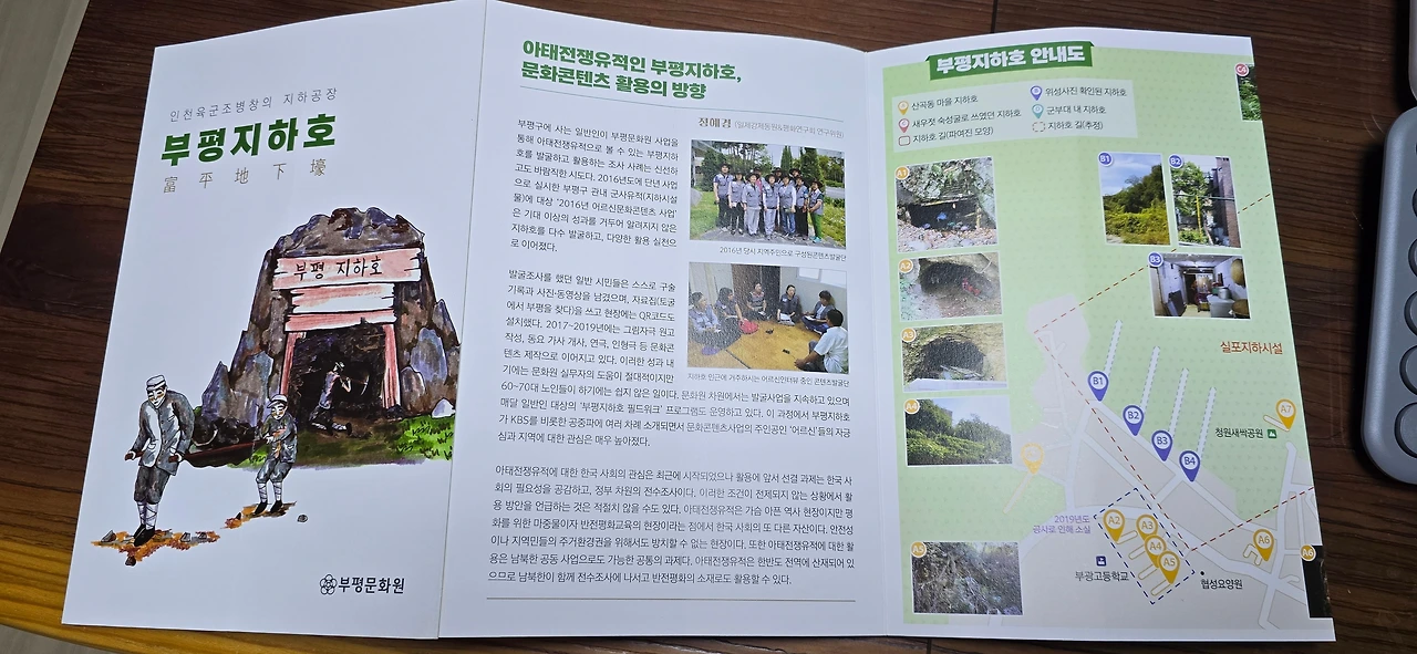 부평에서 꽤 오래 산 필자지만 그동안 전혀 모르고 살았던 장소가 있었다. 바로 부평 지하호. 부평지하호의 정식 명칭은 인천육군조병창 지하시설이다. 부평지하호는 일제 강점기, 일본이 중일 전쟁 장기화에 대비해 현재의 인천광역시 부평 일대에 만들려고 했던 거대한 병기 생산, 보급 기지 건설의 흔적들이다. 그들은 부평구 산곡동에 있는 함봉산 자락 이곳저곳에 인공동굴을 만들고, 미국을 비롯한 연합군의 눈을 피해 아시아 태평양전쟁의 병참기지를 건설하고자 했다. 병참기지, 군비 생산 기지라는 참혹한 전쟁의 현장이자 나라 잃은 시간을 증언해 주는 생생한 역사의 현장이 지근거리에 있었다니. 부평지하호는 심지어 필자가 한 때 근무했던 학교와 불과 버스 한 두 정거장 거리에 있었는데, 왜 그동안 몰랐을까?