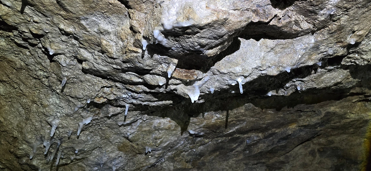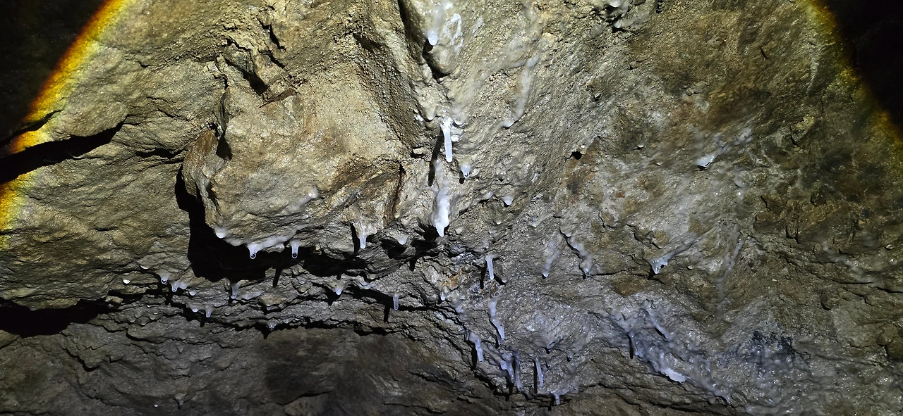 어느덧 지하호 특유의 차가운 공기가 옷깃을 뚫고 피부에 느껴진다. 동굴 벽면에는 물기가 흐르고 있었다. 아마도 돌에는 석회석 성분이 섞여 있었을까? 물이 방울방울 떨어지는 천장을 올려다보면 손톱만 한 종유석이 자라고 있는 것을 발견할 수 있다. 오랜 시간 사람들의 발길이 닿지 않는 동굴이다 보니 자연스럽게 종유석이 종유석이 자라고 있는 것이었다.