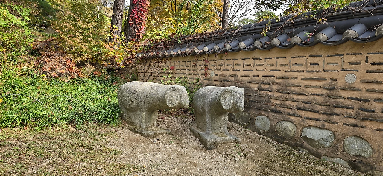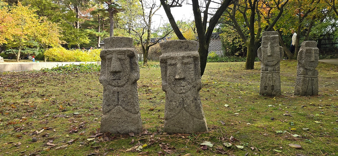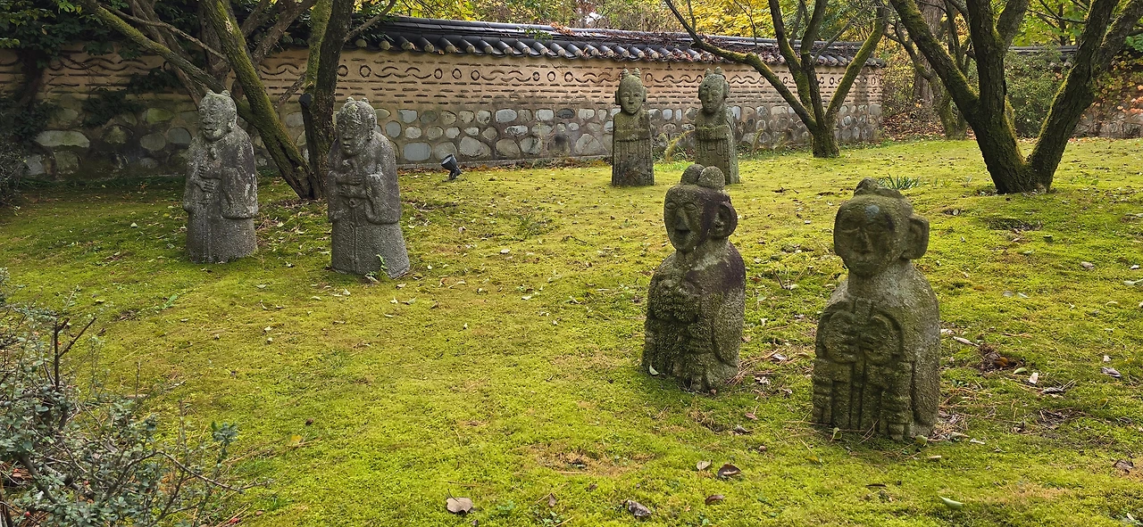 삼성그룹이 소유하고 있는 대표적인 미술관의 하나인 호암미술관은 경기도 용인시에 있다. 까마득한 옛날에는 방문조차 쉽지 않았던 기억이 있는데, 오늘 가본 호암미술관에는 가족단위 나들이 객이 꽤 많았다. 호수 근처에 돗자리와 캠핑의자를 펼치고, 막 찾아온 가을을 만끽하고 있었다. 주차장에 차를 세우고 전시장으로 향하는 길목에 전통 정원인 '희원'이 있고, 정원 곳곳에는 우리나라 전역에서 모아 온 석물이 정원을 장식하고 있었다. 재벌이 막대한 자본으로 사라질 위기의 문화재를 수집하고 보존하는 것에 대해 감사를 표해야 할지, 당황스러웠다. 이 아름답고 독특한 문인석은 당연히 정당하게 수집했으니 이렇게 전시하고 있는 걸 테지. 갑자기 삐져나온 삐딱이. 스스로 당황스럽다.