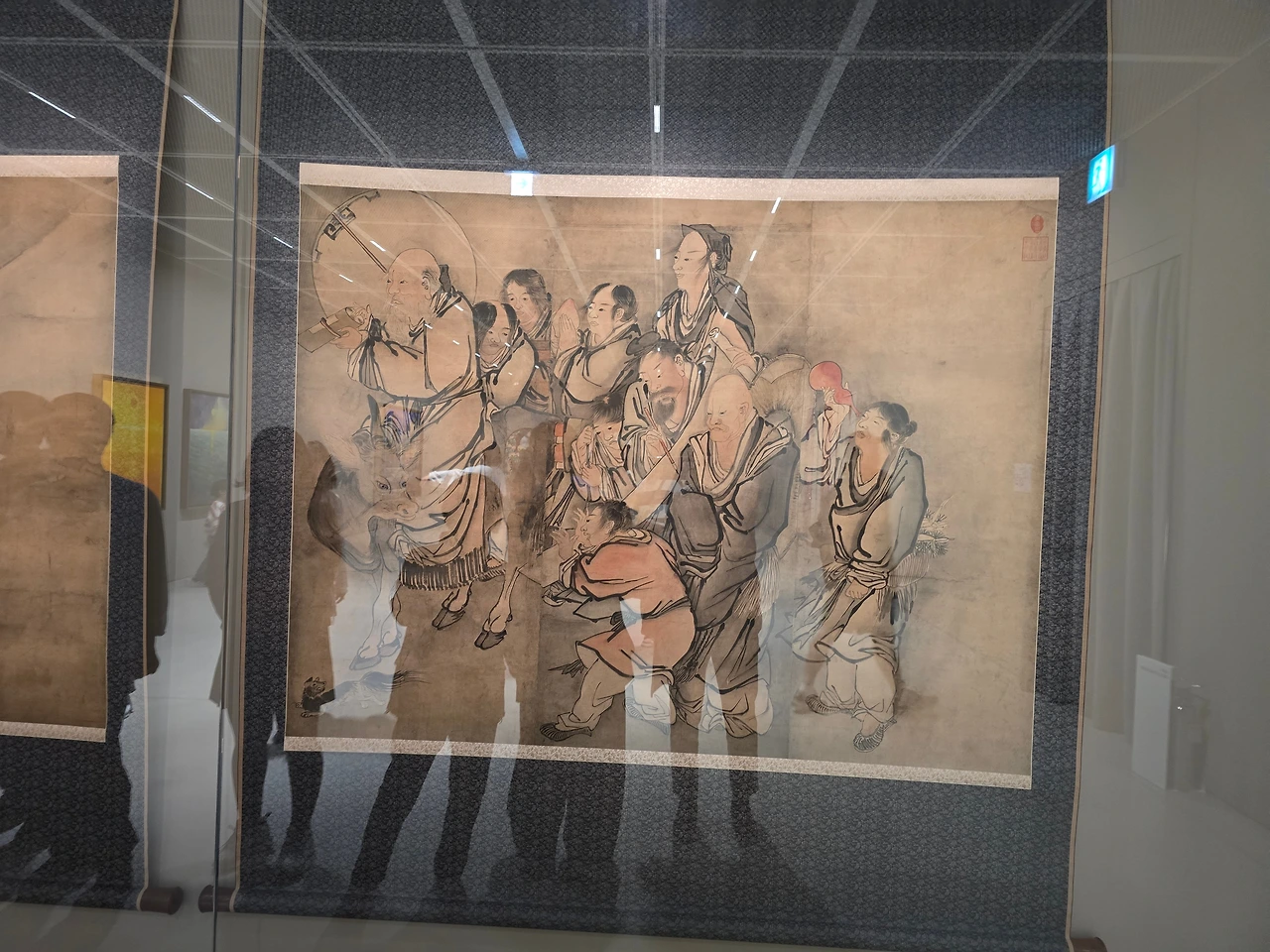 니콜라스 파티는 미술사에서 영감을 얻어 작품을 제작하는 작가다. 그의 작품은 어딘가에서 본 듯 아닌 듯, 익숙한 듯 낯선 듯, 독특한 재미를 준다. 미술사에서 영감을 얻어 그림을 그리다 보니 우리나라 전시를 위해 리움미술관 소장 고미술품이 불쑥 그의 그림에 등장한다. 전시장에는 김홍도의 군선도, 십장생도, 기타 고미술품이 함께 전시되어 있는데, 그의 작품에 사용된 부분이 어디일지 찾아보는 재미가 제법 쏠쏠하다.