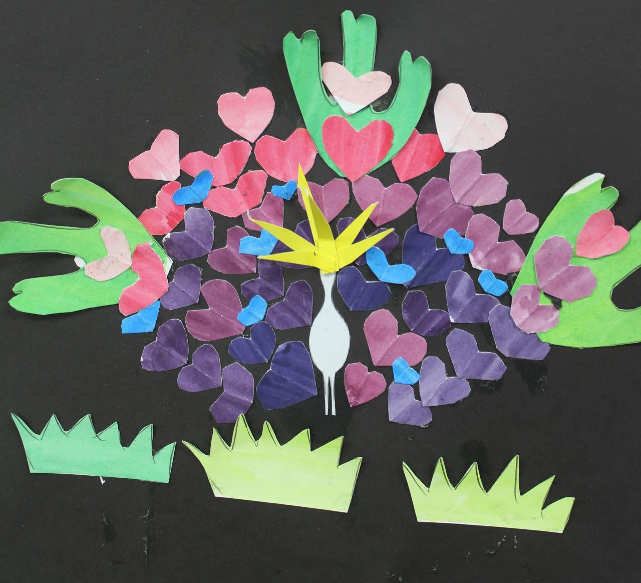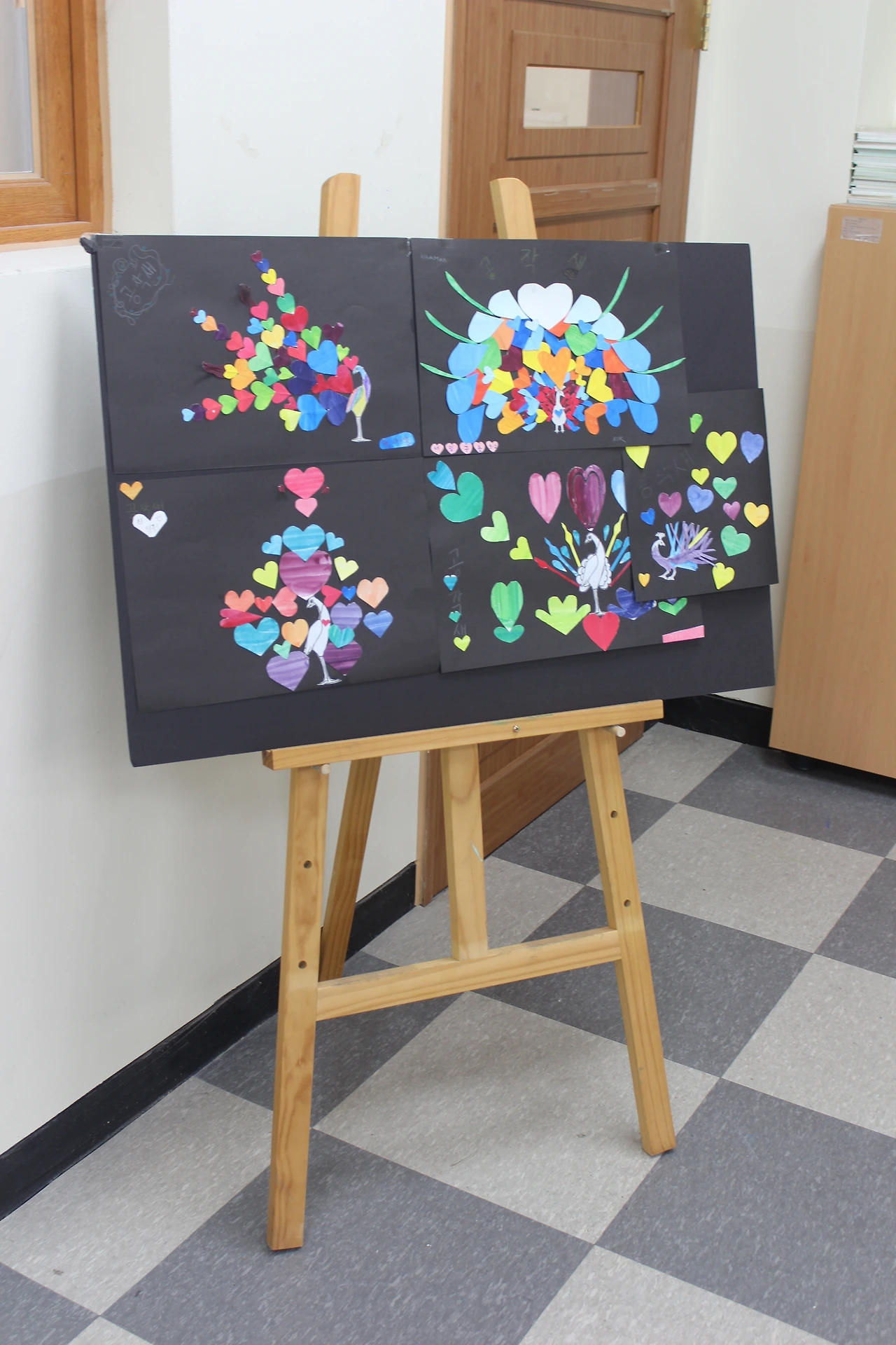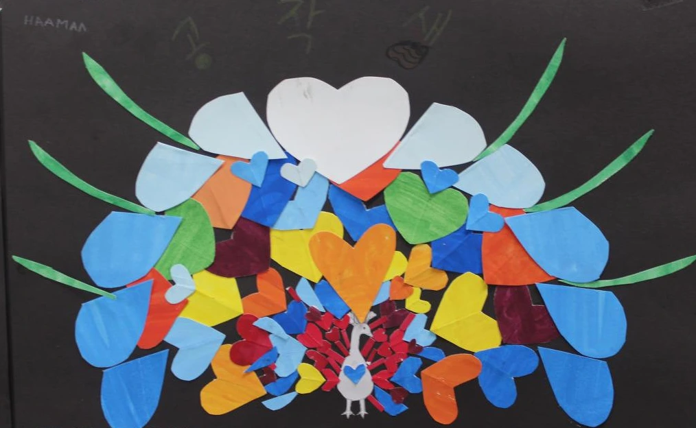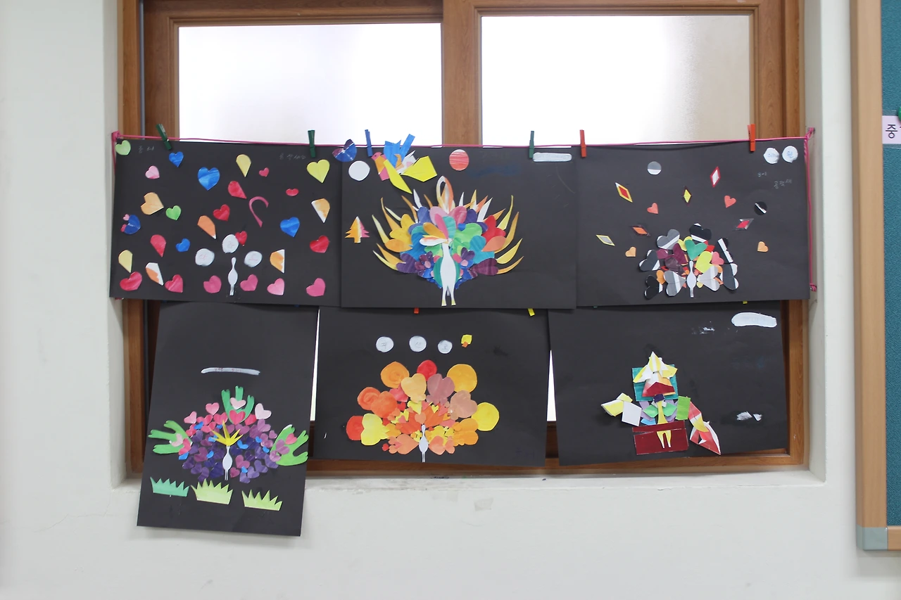 이 수업에서 학생들은 색종이 대신 자신들이 채색해 둔 도화지를 사용한다. 하트 모양, 둥근 모양 등으로 도화지를 잘라 검정 도화지에 붙이는 단순한 활동이기 때문에 사실적인 표현에 대한 두려움이 없이 진행할 수 있어서 초등학생, 때로 고등학생들도 즐겁게 참여할 수 있는 수업이라고 생각된다. 2-4명씩 모둠을 만들어서 진행해도 재미있을 것 같다.