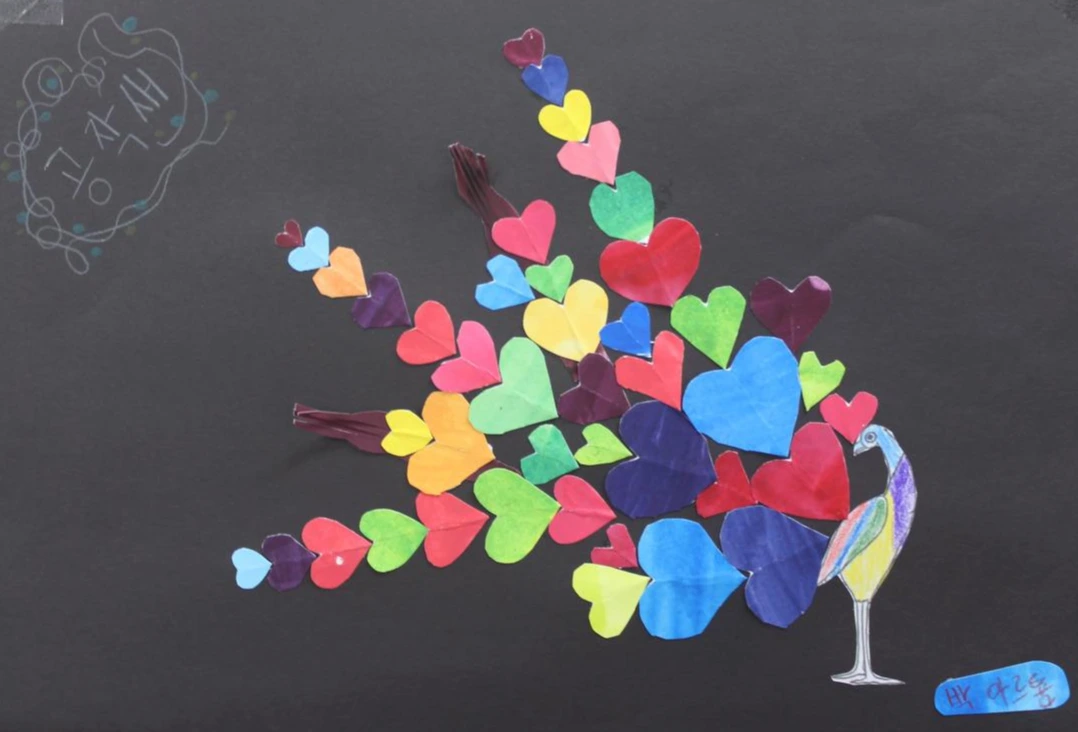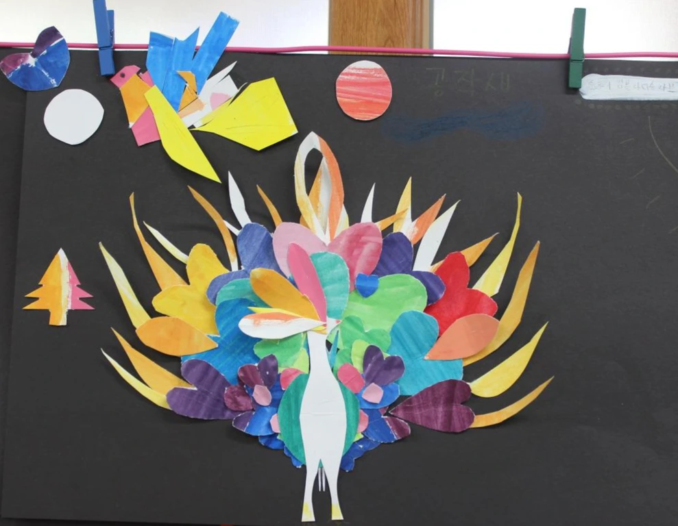 이 수업은 올해 처음 시도한 수업이다. 수업 아이디어는 인터넷 이미지에서 얻었다. 학생들이 자신들이 만든 색상표를 활용하여 공작새의 꼬리를 장식하는 수업이다.
