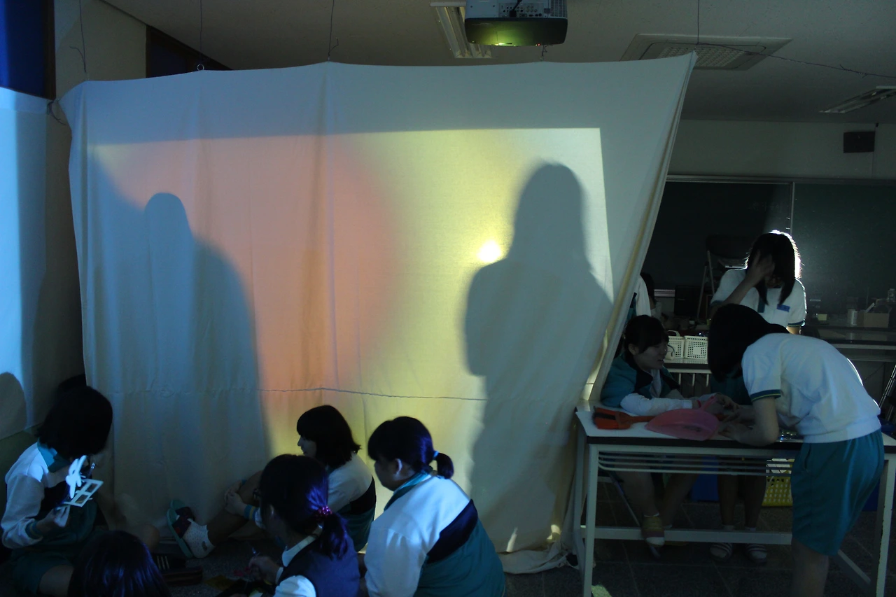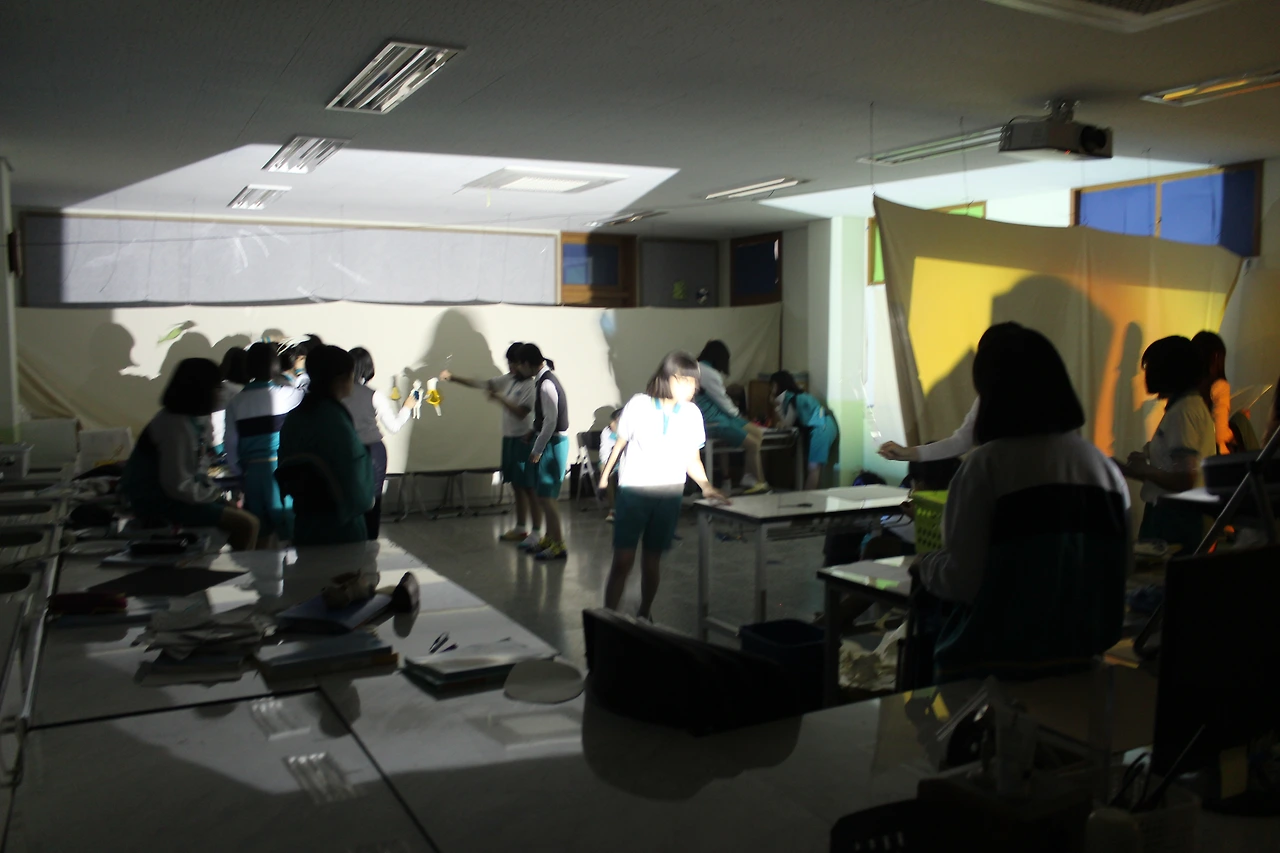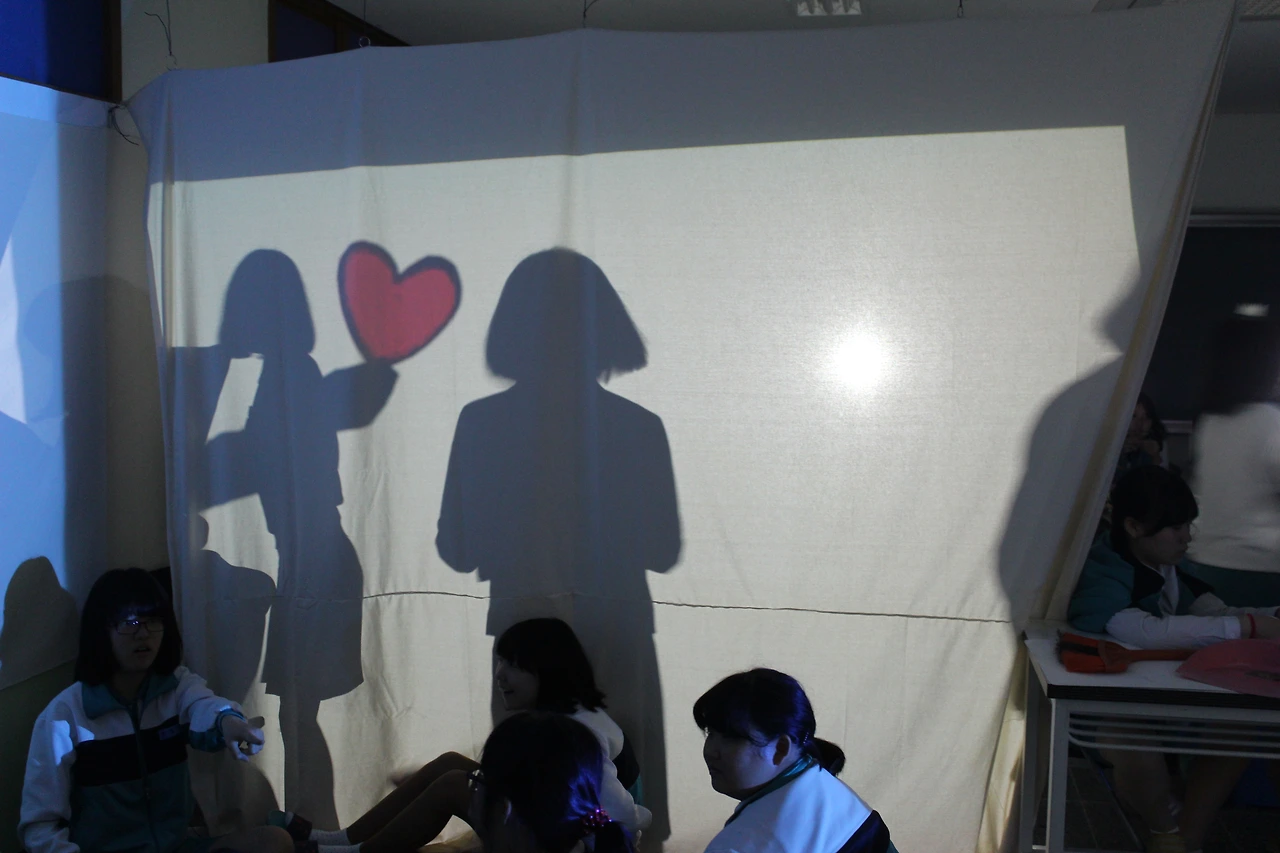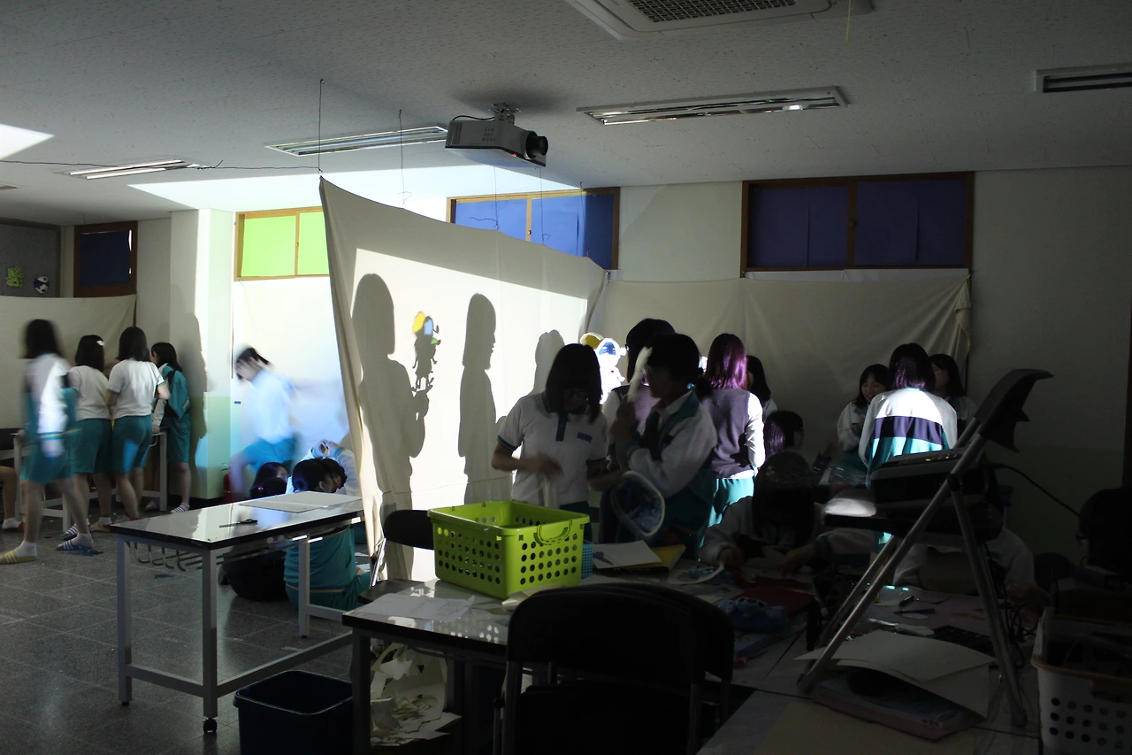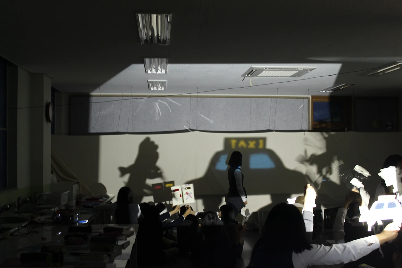그림자놀이 수업은 빛과 색 수업과 한 세트이다. 이 수업을 했던 해에, 나는 미술과 교육과정을 철저하게 이론-적용의 사이클을 가지고 진행하려고 생각했다. 빛과 색은 빛의 혼합과 그림자놀이로, 물감의 혼합은 물감의 삼원색 혼합과 채색화 수업을 하나로 묶어서 진행했었다. 즉, 글자로 배우는 이론이 아니라 체험으로 이론을 배우고, 이를 실재 예술활동에 접목하는 과정 중심으로 연간 수업계획을 세운 것이다.