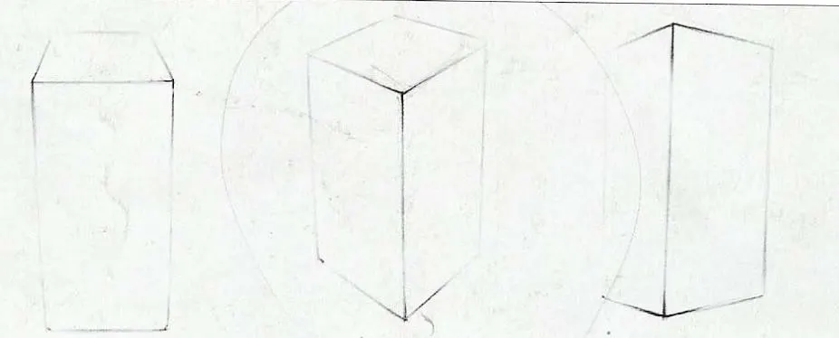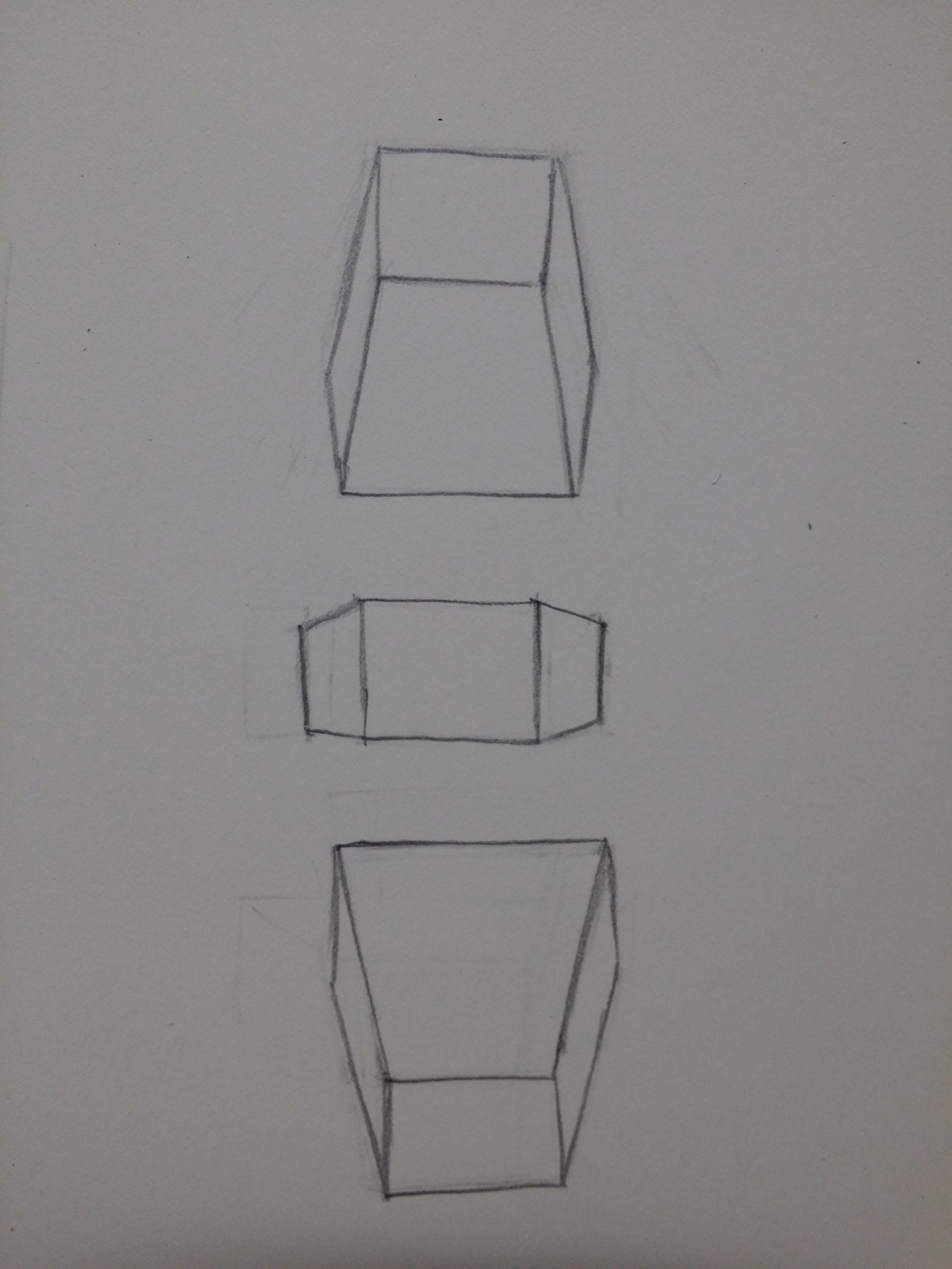 당시 학생들이 그린 것은 보드게임에서 많이 쓰는 젠가였다. 38명에게 동일하게 나눠줄 수 있는 물건이 없어서 궁여지책으로 집에 있는 젠가를 가져와 하나씩 나눠주었다. 다들 알고 있듯 젠가란 물건은 길쭉한 직육면체의 나무토막이다. 그런데, 대부분의 아이들은 내가 '정답'으로 생각하고 있는 그림을 그렸지만 몇 명의 아이들이 역원근법으로 그렸다고 해도 틀리지 않을 정도로 이상한 모양의 젠가를 그려놓았던 것이다. 다음의 그림은 그때 아이들이 그렸던 것을 내가 재현해본 것이다.