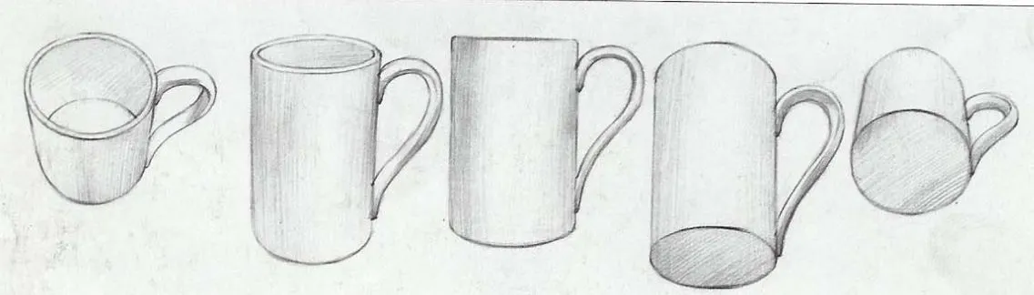 첫 번째 활동인 눈의 방향에 따른 형태의 변화 활동에서는 컵을 주고, 방향을 바꿔가면서 그리게 했다. 대부분 교과서에 제시된 것과 같은 모양을 그려 내었다. 그런데, 눈높이에 따른 형태 변화를 그리는 활동에서 이상한 그림이 등장하기 시작했다.
