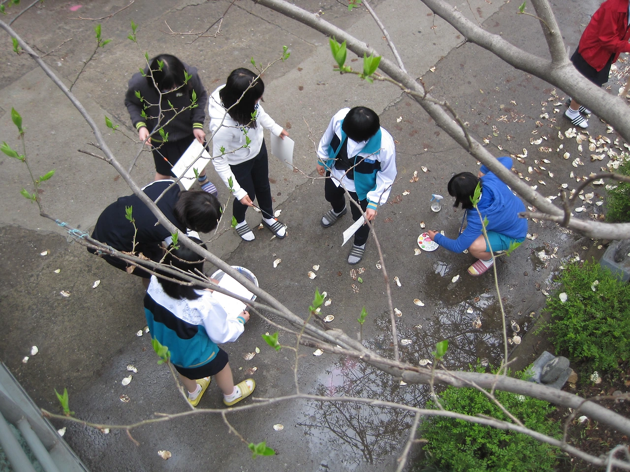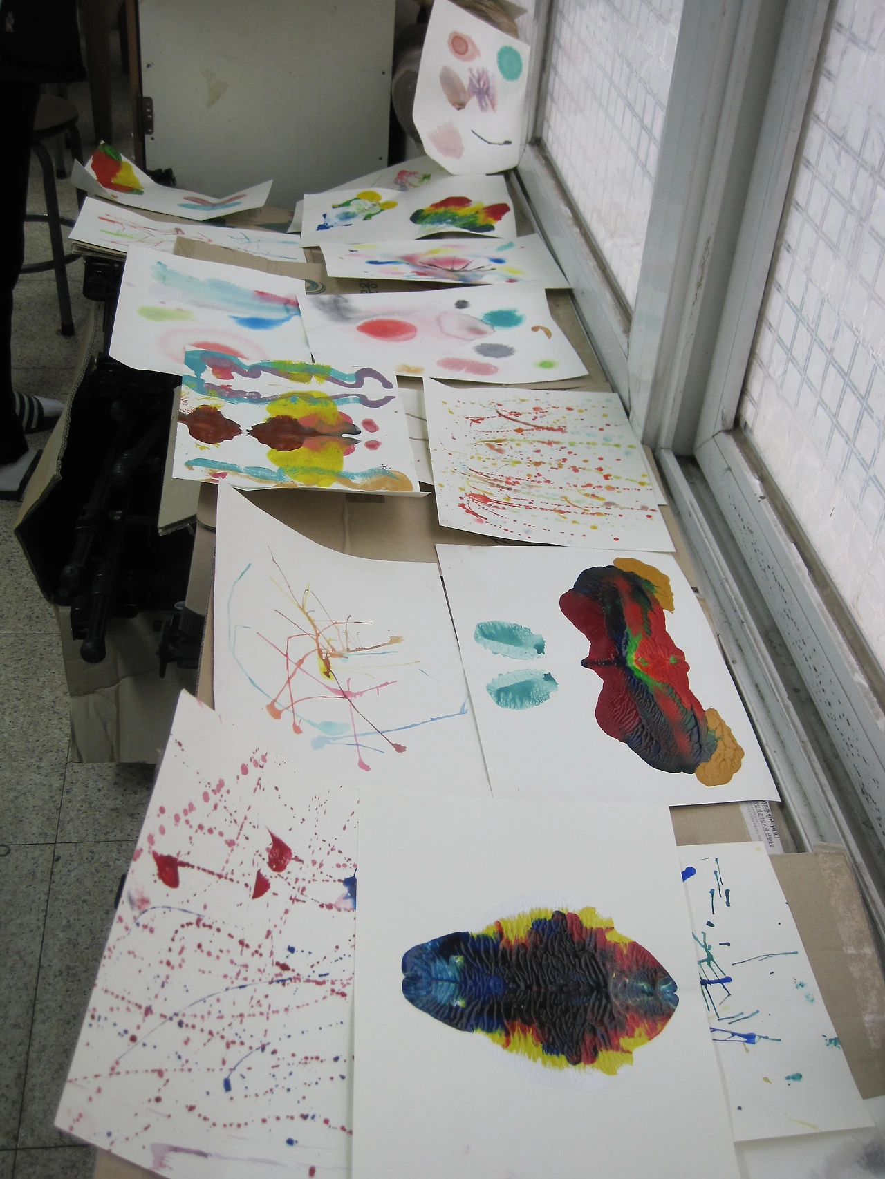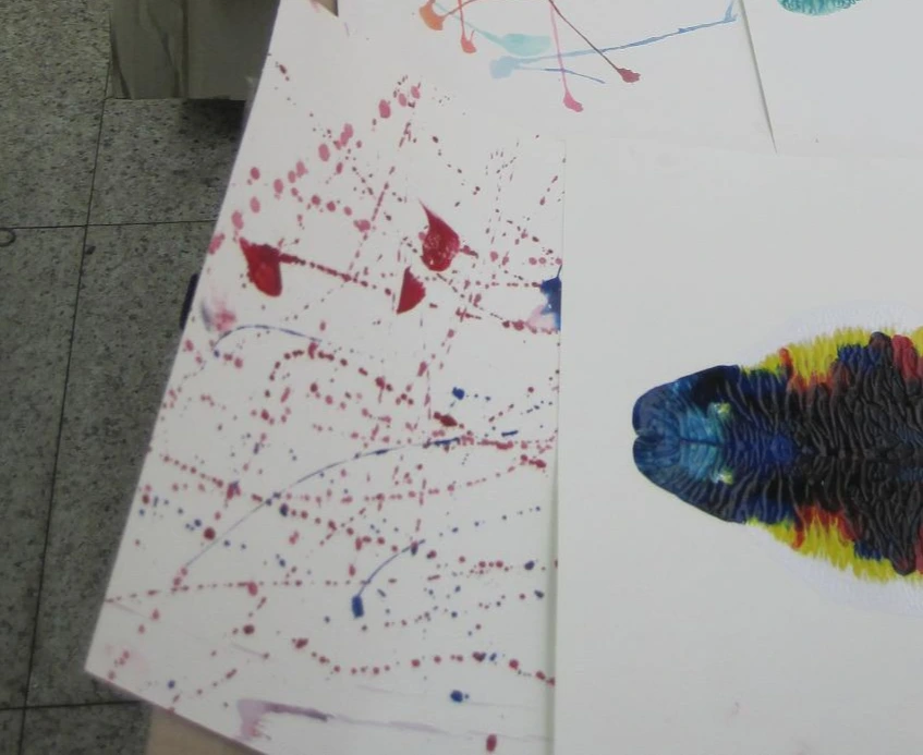 도화지에 물감을 떨어뜨린 후 입으로 불어 물감 가지를 만든다. 물감이 너무 진하면 잘 불어지지 않으므로 농도를 잘 조절해야 한다.