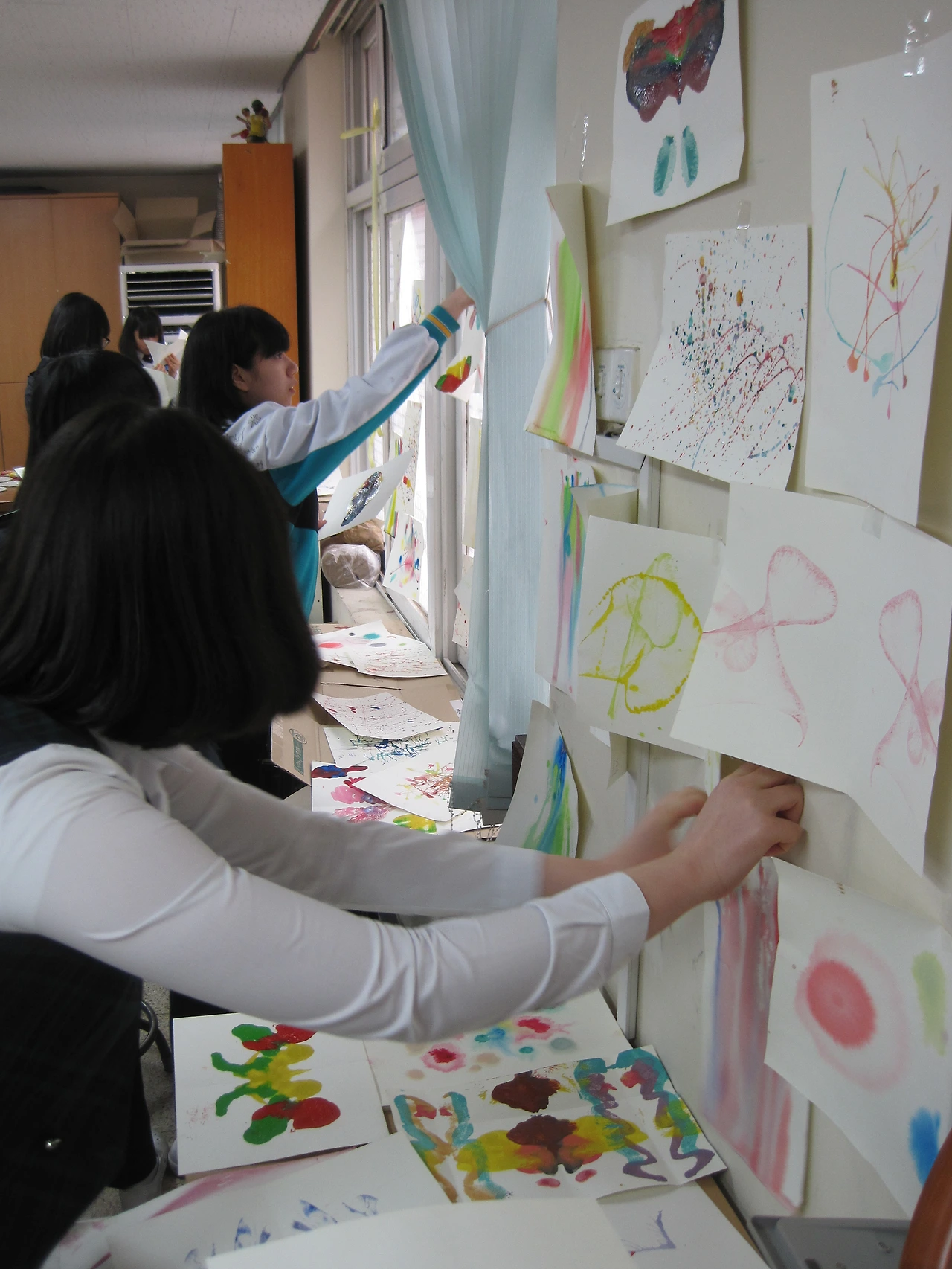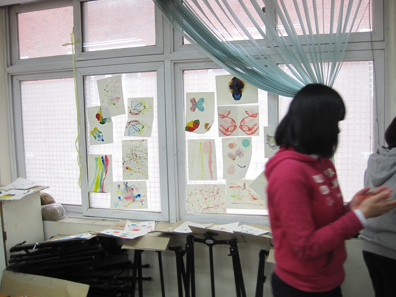 일단, 수업에 대한 학생들의 몰입도가 크기 때문에 수업 중간에 전체를 대상으로 안내하는 것이 쉽지 않다. 교사의 설명을 놓친 학생들을 위해 표현 기법에 대한 개략적인 안내판을 벽에 붙여놓는 것도 한 방법이다. 학생들은 자율적이고 자유스러운 분위기에서 서로 도와가면서 활동하고, 교사는 활동 방법에 대한 조언과 도구 사용 방법을 도와주는 정도가 적당하다.