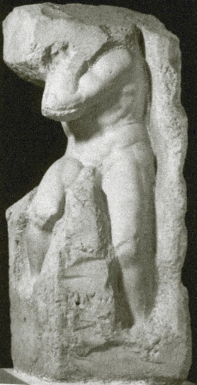 미켈란젤로의 미완성 조각상, <큰 덩이 머리 노예>를 봅니다. 몸통은 돌 밖으로 드러나 있지만, 손과 발, 머리는 대리석 덩어리 안에 잠겨 있네요. 이것을 미완성이라 불러도 될까요? 돌 안에 갇힌 머리에서 완전한 노예를 봅니다. 숨통 막힌 존엄성을 봅니다. 잠시, 그를 마저 꺼내는 모습을 상상해 봅니다. 얼굴 없는 노예가 호통 칩니다. ‘그만둬요, 지금이 더 노예답잖소!’