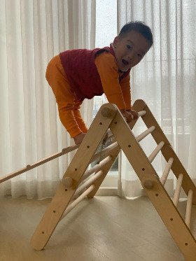 기어오르기는 수개월에 걸쳐 지긋지긋하게 할 텐데요. 그냥 그걸 맘껏 할 수 있는 장난감을 사서 한 달에 한두 번씩 모양을 같이 바꿔가며 올라가게 해 줬어요.