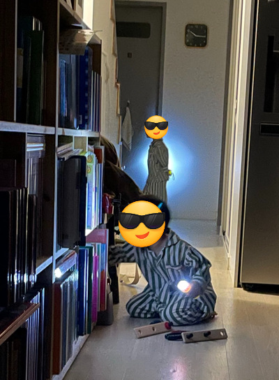 구피 탐정이 땅콩 도둑을 찾는 이야기인데요. 탐정 노래에 빠져서 밤마다 손전등을 들고 다니며 단서를 찾습니다. 뭐가 필요할지 모르니(you never know what you'll need) 이거 저거 다 꺼내서 쌓아놓기 일쑤고요.