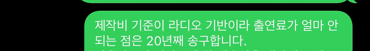 맞아요. 심지어 요즘은 스튜디오라는 물리적 공간이 아니어도 녹음하고 전송하고 편집할 수 있습니다. 다소 자조적이지만 AI로 아끼고 말고 할 예산 자체가 별로 없습니다. 하드웨어를 제외하면 제작비가 영상 대비 한 줌이고요. 구체적인 금액은 밝힐 순 없지만 제가 섭외할 때 보내는 문자나 메일엔 아래 구절이 꼭 들어갑니다.