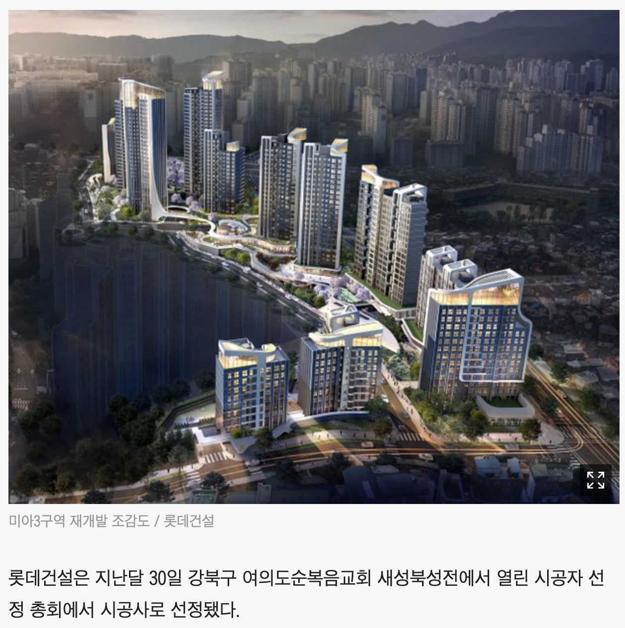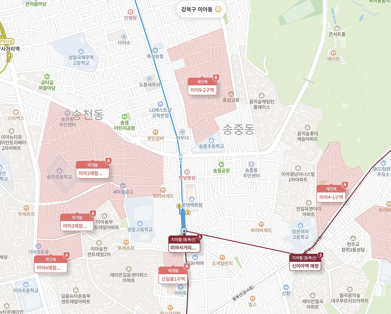 미아 사거리역 주변에는 진행 중인 재개발 / 재건축 단지가 많이 있는데요. 대부분 진척이 많이 된 상태예요. 미아3재정비 촉진구역은 사업시행 인가가 완료, 롯데건설에서 수주해 1,037세대 규모의 가구를 조성할 계획이에요. 3,521 세대 단위의 재개발이 진행 중인 미아2재정비 촉진구역의 경우 2016년에 조합설립 인가가 끝난 후 사업시행 인가를 기다리고 있어요.