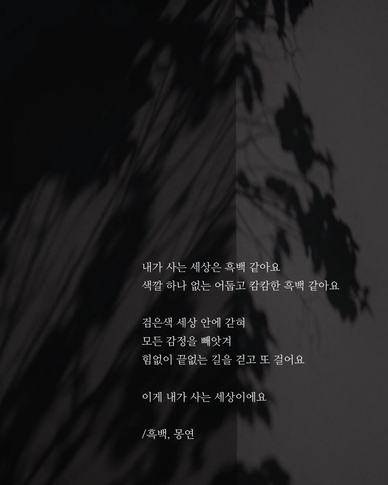 색깔 하나 없는 어둡고 캄캄한 흑백 같아요