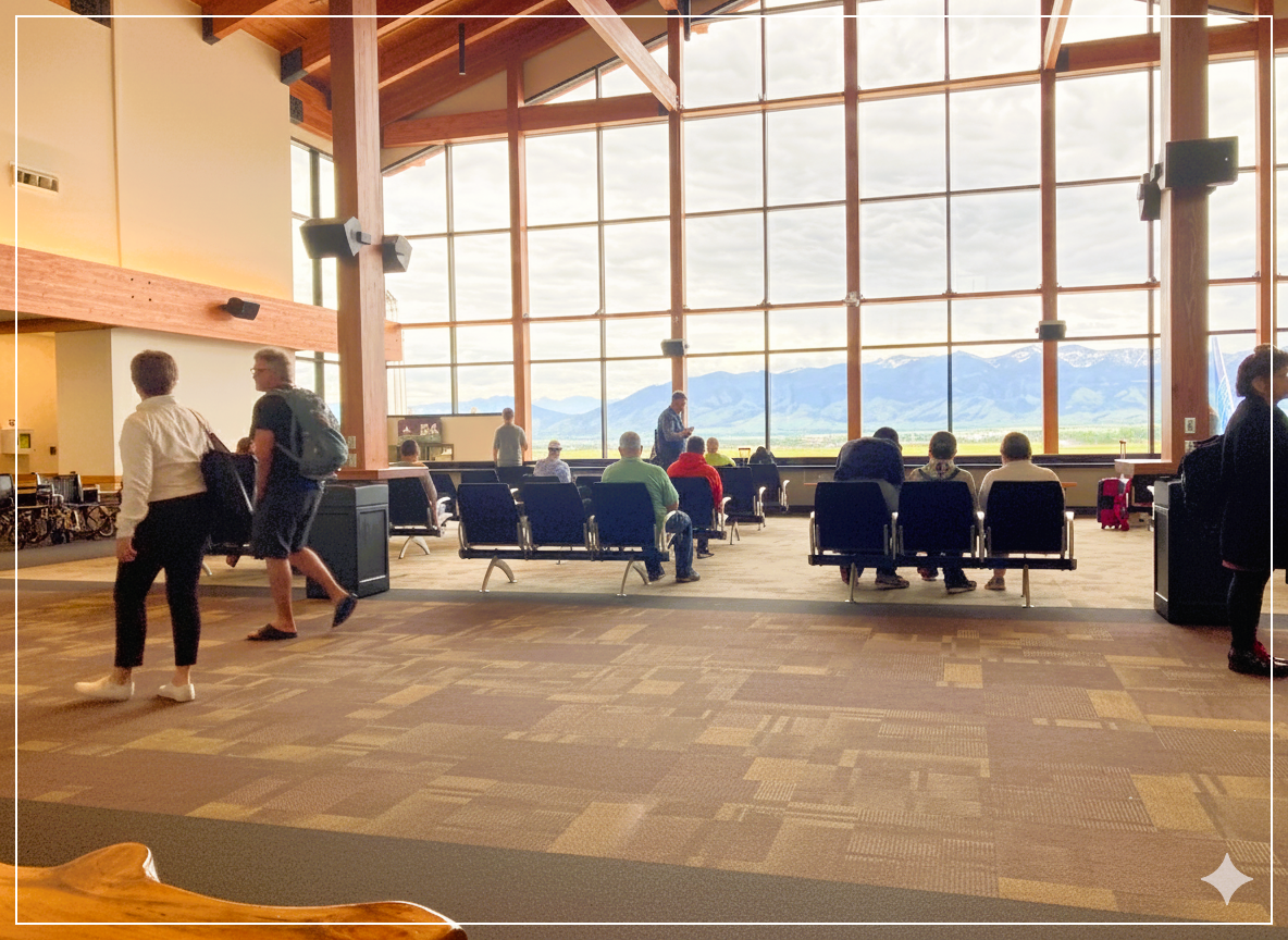 시애틀에서 비행기로 한 시간 반이면 도착하는 보즈만 공항은 놀랍게도 아늑하고 아름답다. 기대가 없어서 더 그렇게 느꼈을 터. 작지만 깨끗하고 내부는 원목 구조에 커다란 통유리창이 있어 이미 어느 한적한 휴양지 리조트에 당도한 기분이 든다. 사실 한국에서 옐로우스톤 가기란 쉽지 않다. 미서부 대도시에서 최소 10시간 넘게 운전해서 가야 하는 부담이 크기 때문이다. 그러나 이곳 공항을 경험하고 느낀 점은 한국에서 비행기를 타고 시애틀을 경유하여 보즈만 공항으로 오는 여정도 참 괜찮은 방법이라는 생각이 들었다. 참고로 시애틀-보즈만 노선은 알래스카와 델타에서 하루에 각 두어 편씩, 하루 총 다섯 편 정도가 운항하고 있다. 행여나 시애틀 도착하여 당일 환승이 어렵다면, 시애틀에서 낭만의 하룻밤을 보내고 난 다음 날 아침 일찍 출발하는 것도 멋진 선택이 될 것 같다.