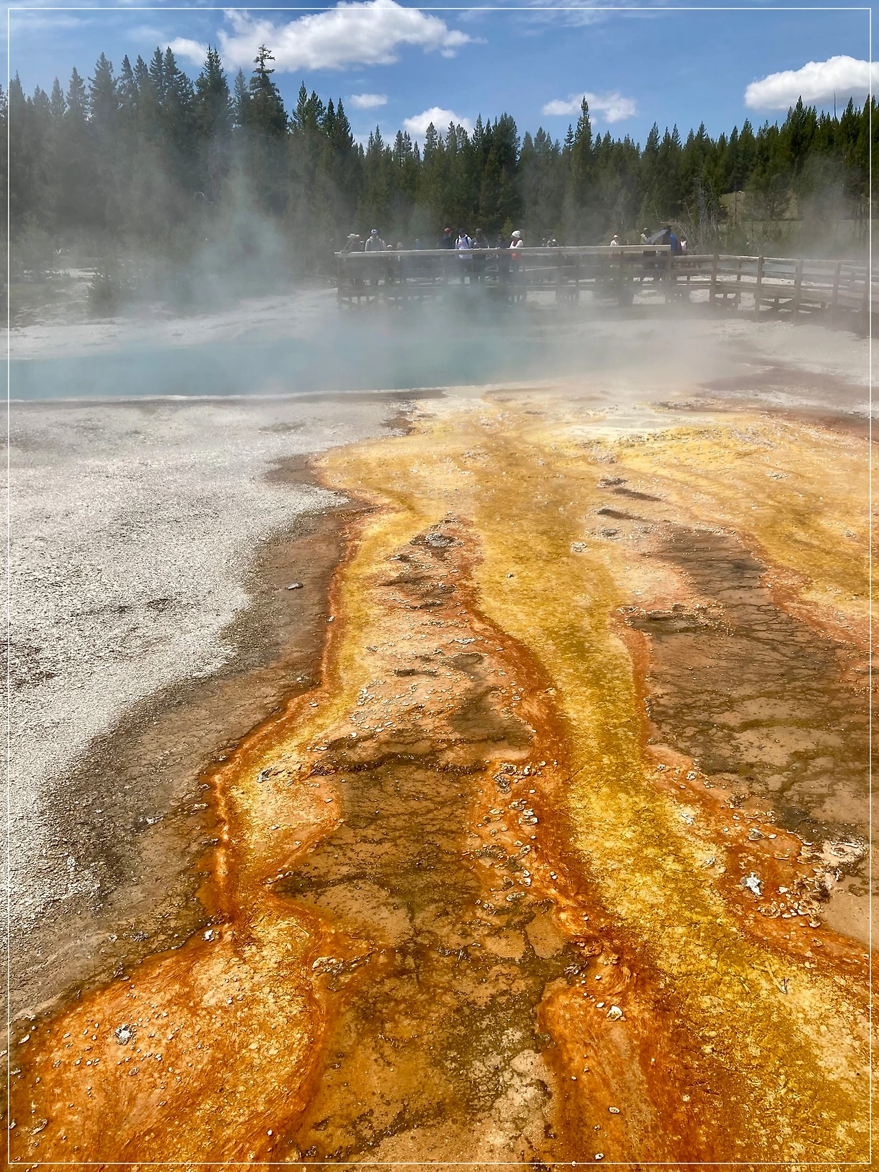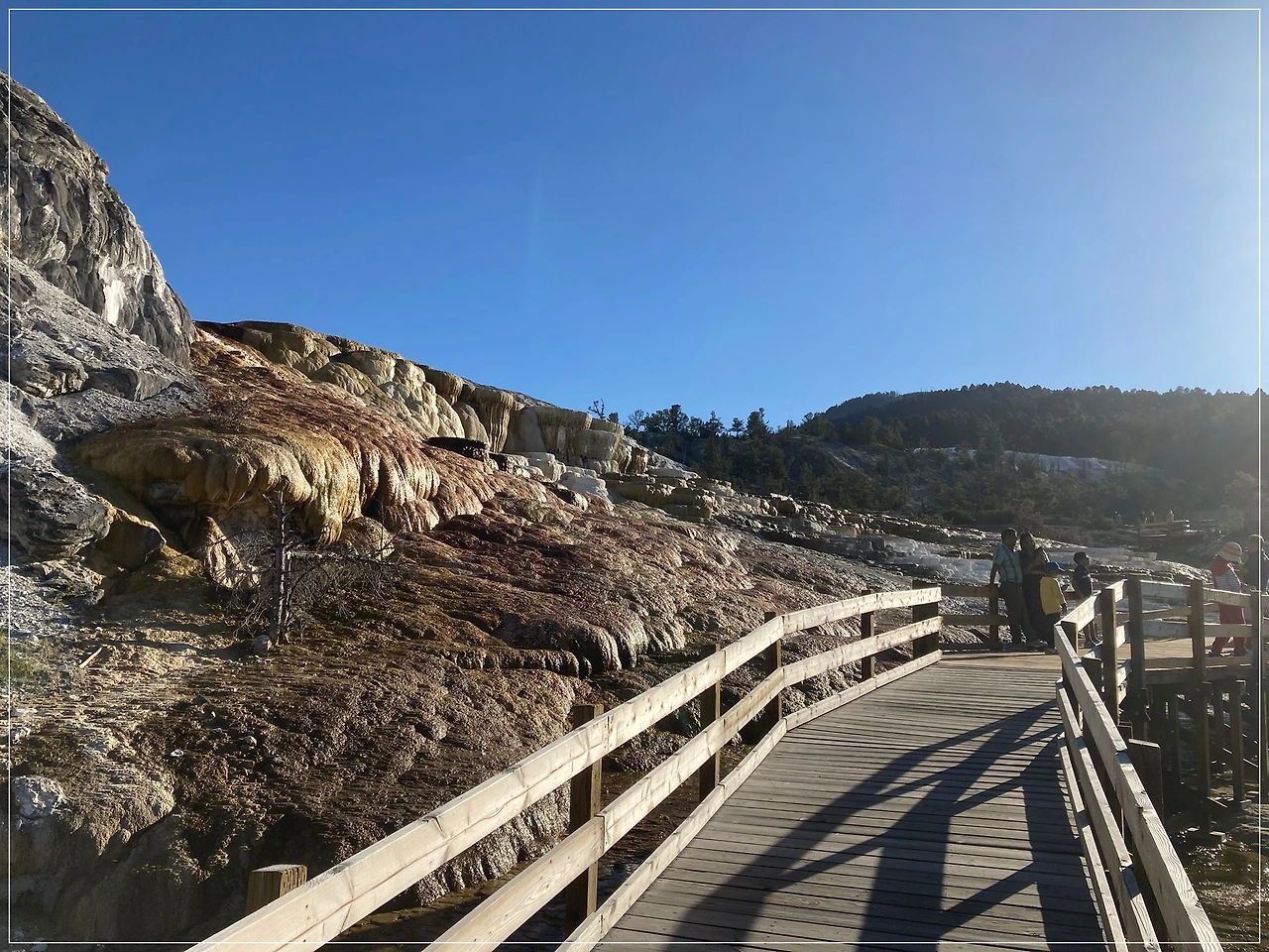 옐로우스톤을 걷다 보면 여기저기서 독일어, 프랑스어, 스페인어, 중국어 소리가 쉴 새 없이 들린다. 미국인뿐만 아니라 전 세계 사람들에게 사랑받고 있는 관광지라는 것을 실감한다. 좋은 여행지는 단순히 크고 멋진 곳이 아니라 자신만의 스토리가 있어야 하는 곳이라 생각하는데 옐로우스톤만큼 묵직하면서도 개성 넘치는 이야기들을 담고 있는 곳이 또 있기는 할까. 내가 좋아하는 여행지 리스트에 남들 모두가 좋다 하는 곳보다 나만 아는 멋진 곳들로 채우고 싶은 마음이 제아무리 간절하여도 이곳만큼은 양보를 해야 할 것 같다. 노란 바위… 인정.