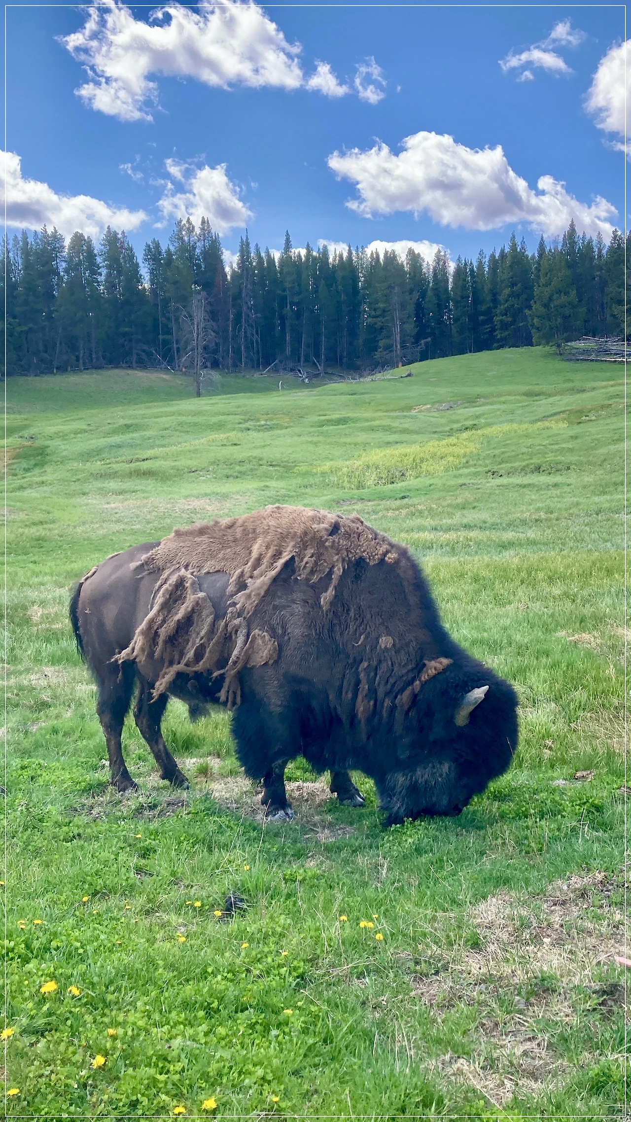 아메리카 들소, 바이슨(Bison). 몸무게 최대 900킬로그램이나 나가는 북미 최대 육상 동물이다. 사람들은 버펄로(Buffalo)와 혼동하곤 하는데, 바이슨은 북미에서 버펄로는 아시아와 아프리카에서 서식하고 생김새도 다른 엄연히 다른 종이다. 바이슨은 북미에서도 멸종위기종이며 가까스로 옐로우스톤에 5천여 마리 남아있다고 한다. 그리고 이곳 라마벨리에서 이들 개체군의 대부분을 목격할 수 있다. 드넓은 초원에 보이는 수많은 검은 점들은 마치 인간이 잠시 방목한 가축들인 것 마냥 한가로이 무리를 지어있다. 기괴해 보이지만 한없이 온순한 이 천연덕스러운 생명체가 눈앞에서 햇볕을 쫴며 풀을 뜯고 있다. 아프리카 어디 유명 초원을 가본 적은 없는데 만일에 가본다면 이런 느낌이 들지도 모를 일이다.
