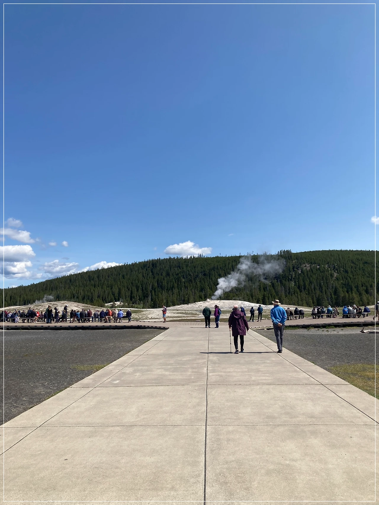 셋째 날 저녁은 이곳 옐로우스톤 국립공원에서 가장 사랑받고 있는 올드 페이스풀 가이저(Old faithful Geyser) 지역에서 묵는다. 올드 페이스풀은 이름만큼이나 오랜 기간 사람들의 신뢰를 지켜 온 곳이다. 무엇에 대한 신뢰일까. 가이저는 땅구멍에서 50미터 거대한 물줄기를 뿜어내곤 하는데, 1870년대 발견 후 150년이 지난 지금까지 계속 주기적으로 (약 100분에 한 번씩) ‘우리의 신뢰를 저버리지 않고’ 물을 뿜어주었다. 이 지역 세 개 숙소 로비 그리고 바로 옆 visit center에서는 매번 이 분출시간을 써붙여 놓고 있으므로 그 시간에 맞춰 가이저로 달려가기만 하면 된다. 올드 페이스풀 가이저는 고래 등에서 뿜어져 나오는 물기둥 마냥 쉼 없이 존재감을 뿜어내는 이곳 옐로우스톤의 상징이다. 아울러 세 개의 숙소 중 가장 오래된 올드 페이스풀 인(Inn)은 겉모습부터 범상치가 않은데 무려 120년이나 된 세계에서 가장 큰 목조 호텔 중 하나라고 한다. 가이저든 호텔이든 오랜 기간 세월과 싸워오기보다는 시간과 함께 성숙해져서 점점 그에 걸맞은 품위와 위용을 자랑하는 듯 보인다. 앞서 루스벨트 아치에 쓰인 말처럼 이 모든 게 모두를 위한 자산이었기 때문에 모두가 힘을 모아 잘 지켜낸 결과일 것이다.