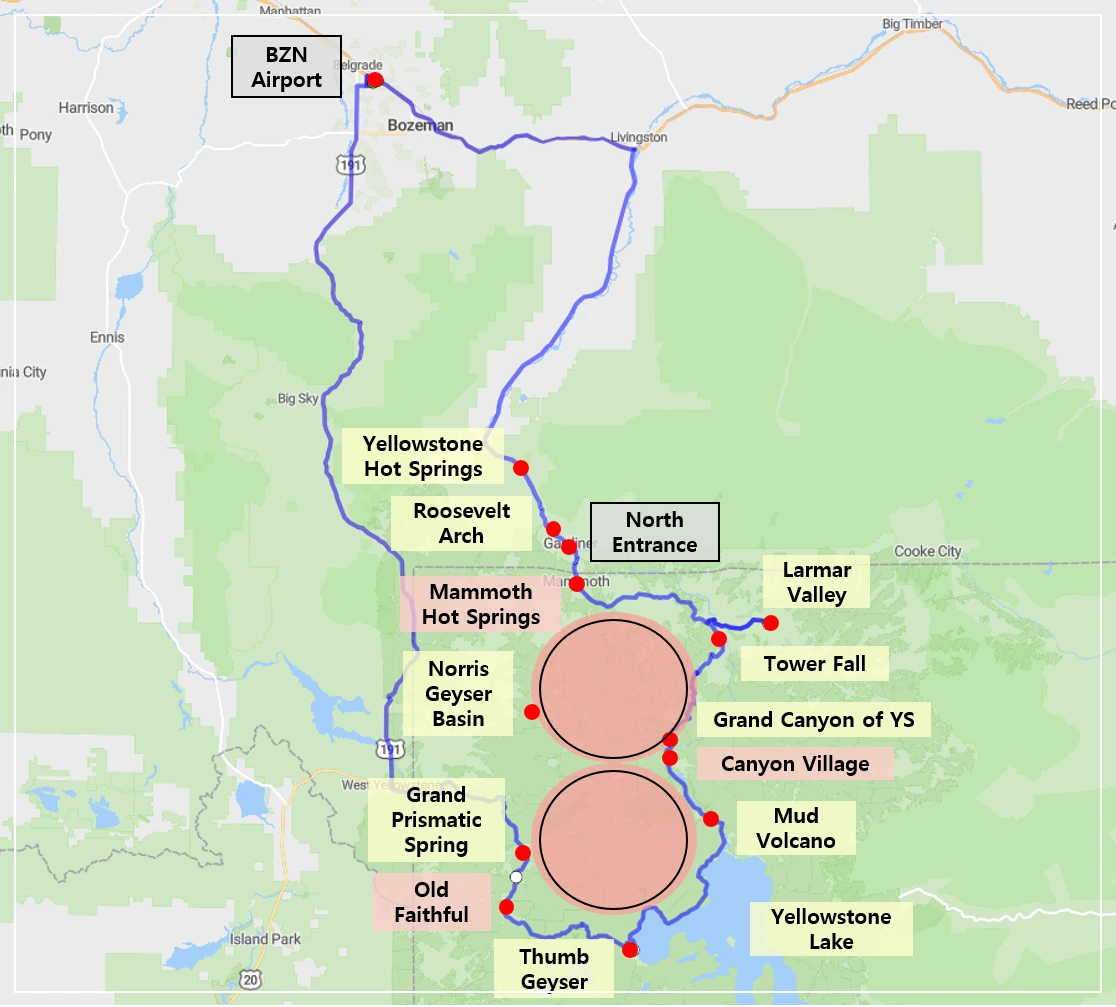 아는 만큼 보인다고 했던가. 이제는 사전 여행지 공부 스트레스는 훌훌 떨치고 여행을 떠나보자. 옐로우스톤을 다녀온 사람들의 이야기를 들어보면 하루 만에 재빨리 지나쳤다는 사람도 있고, 한 달여 캠핑을 했다는 사람도 있다. 많은 사람들이 보통 집에서 차로 10시간여 로드트립을 하고 일주일 정도 머물다 온다. 필자는 휴가를 금보다 귀하게 여기는 한국인 40대 직장인이다. 총 일정 3박으로 끊어보자.