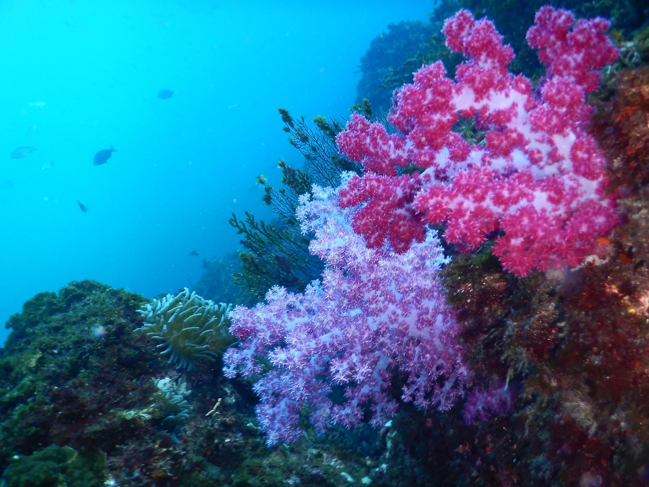 산호가 하나둘씩 나타나더니, 무채색의 바다에 색을 입혀줬다. 내가 좋아하는 보라색. 누군가가 짙은 청록 바다에 어색하게 꾸며둔 장식 같았다. 아, 이거 생긴 게 어디서 많이 봤다 했더니, 치커리랑 닮았다. 딱 보라색 치커리였다. 치커리가 이렇게 많다니! 고기에 쌈 싸 먹고 싶어졌다.