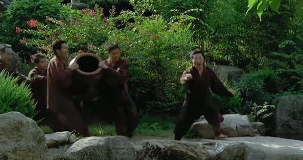 그 중 영화의 백미(白眉)는 누가 뭐래도 바로 ‘빈 독에 물 채우기.’ 장면일 것이다. 스님들이 지내는 절에 조직 폭력배들이 무단으로 들어와 머물기를 며칠, 더 머물겠다는 폭력배 측과 이제는 절을 떠나달라는 스님들 측의 팽팽한 의견 대립 끝에, 5:5 구성원을 바탕으로 여러 종목의 경기가 이루어진다(이 과정에서 화투, 족구, 삼육구 등 상상치 못한 경기들이 나오고, 이를 진행하는 과정에서도 여러 가지 웃음 포인트를 넣어 재미를 더한다.). 그러나 경기는 결국 무승부로 끝내 결판을 내지 못하자 절의 오야붕(?)인 주지스님은 중재안으로 양 측 모두에게 밑 빠진 독에 물을 가득 채우라는 문제를 낸다. 독에 물을 채우는 방법은 결국 항아리를 물에 던져 넣는 것. 폭력배들이 깨진 독을 들고 근처 연못에 던져놓고 나서야 “독 안에 맑은 물이 가득 흘러 넘치는구나.” 하며 경기는 폭력배들의 승리로 끝이 난다. 이후 주지스님은 폭력배 우두머리인 박신양과의 독대에서 왜 본인들을 감싸주냐는 박신양의 물음에 ‘너희가 항아리를 물속에 던져 넣었듯이, 나도 밑 빠진 너희들을 내 마음 속에 던져 넣었을 뿐이다.’ 하는 말로 깨달음을 준다.