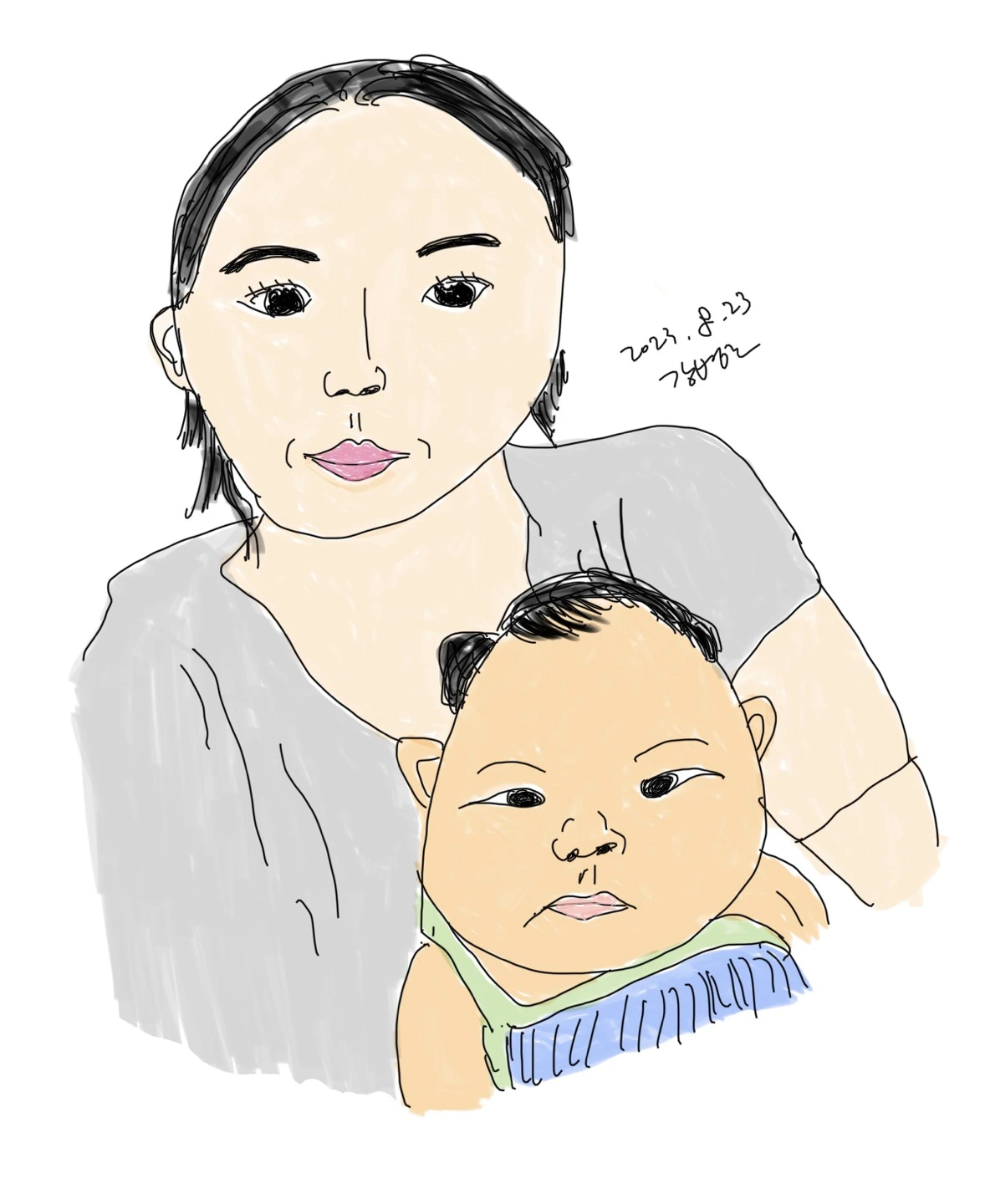회사에서 일하고 있는데 카톡이 하나 왔다. 아내가 보낸 사진이었다. 사진 속에는 아내와 이제 태어난 지 딱 80일 된 딸아이가 있었다. 가족사진을 찍는 것처럼 단정한 포즈였다. 괜히 흐뭇해졌다. 매일 누워있는 모습만 보다가 이렇게 그럴듯하게 찍은 사진이라니. 벌써 다 큰 것 같다는 생각이 들었다.